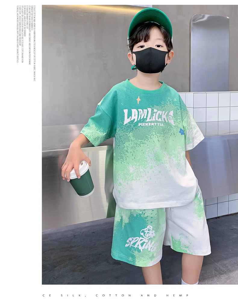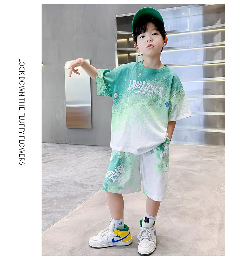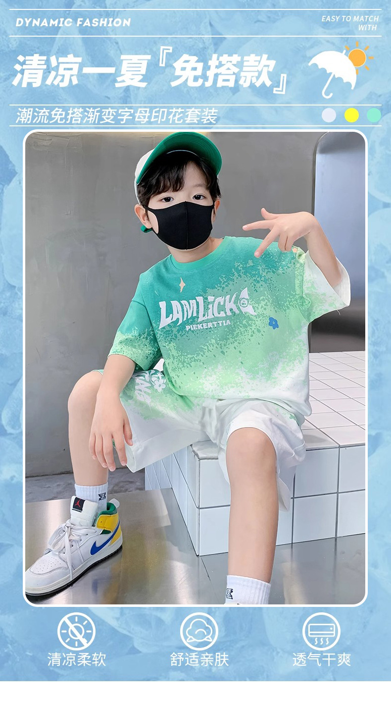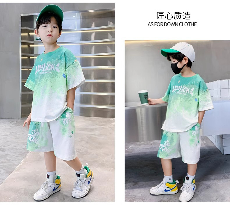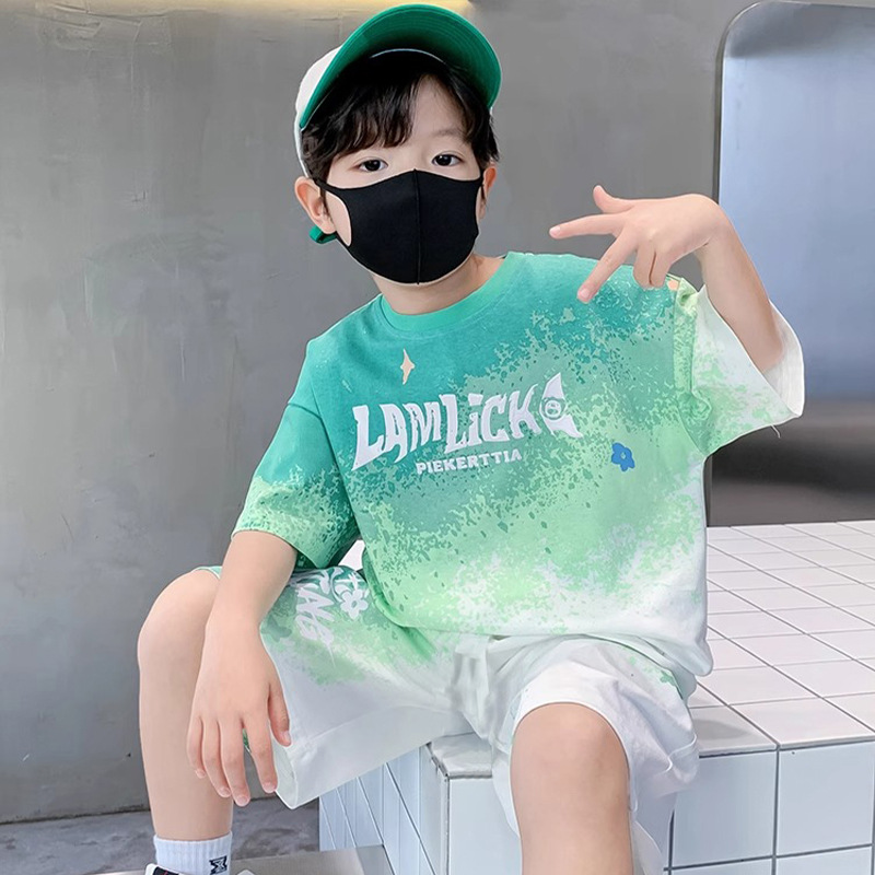 소년 여름 정장 새로운 스타일 어린이 소년 스포츠 반팔 반바지 잘 생긴 중대형 어린이 캐주얼 스포츠 투피스 세트