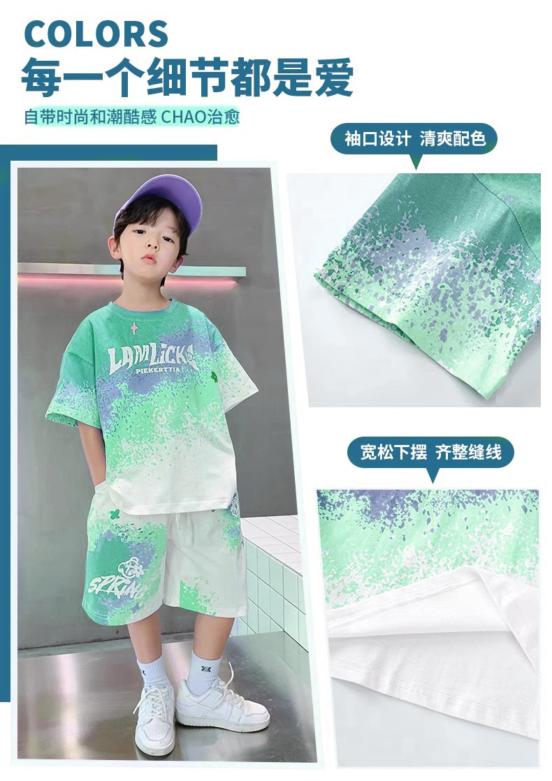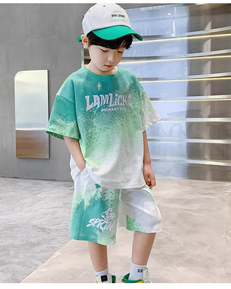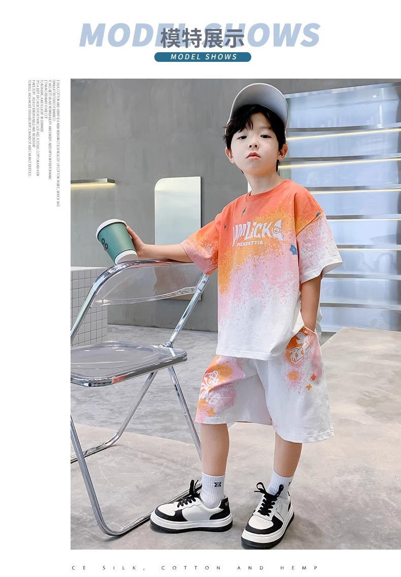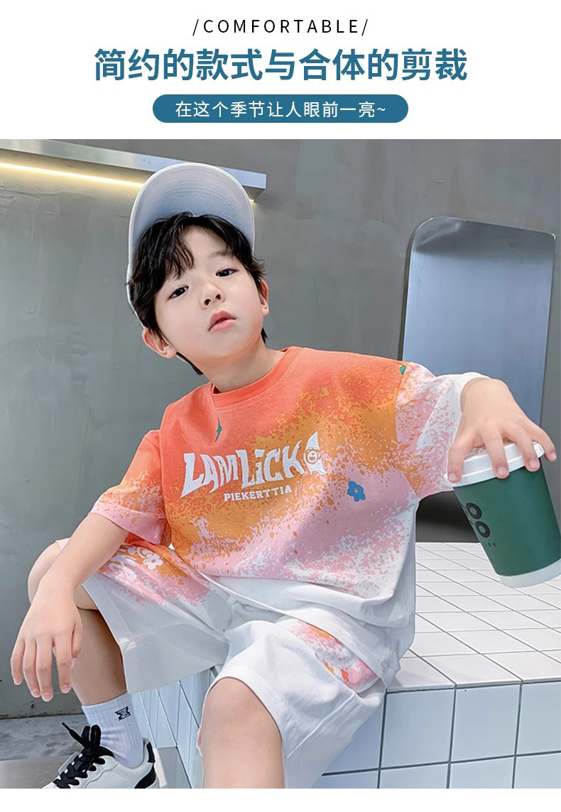 소년 여름 정장 새로운 스타일 어린이 소년 스포츠 반팔 반바지 잘 생긴 중대형 어린이 캐주얼 스포츠 투피스 세트스토어 가기