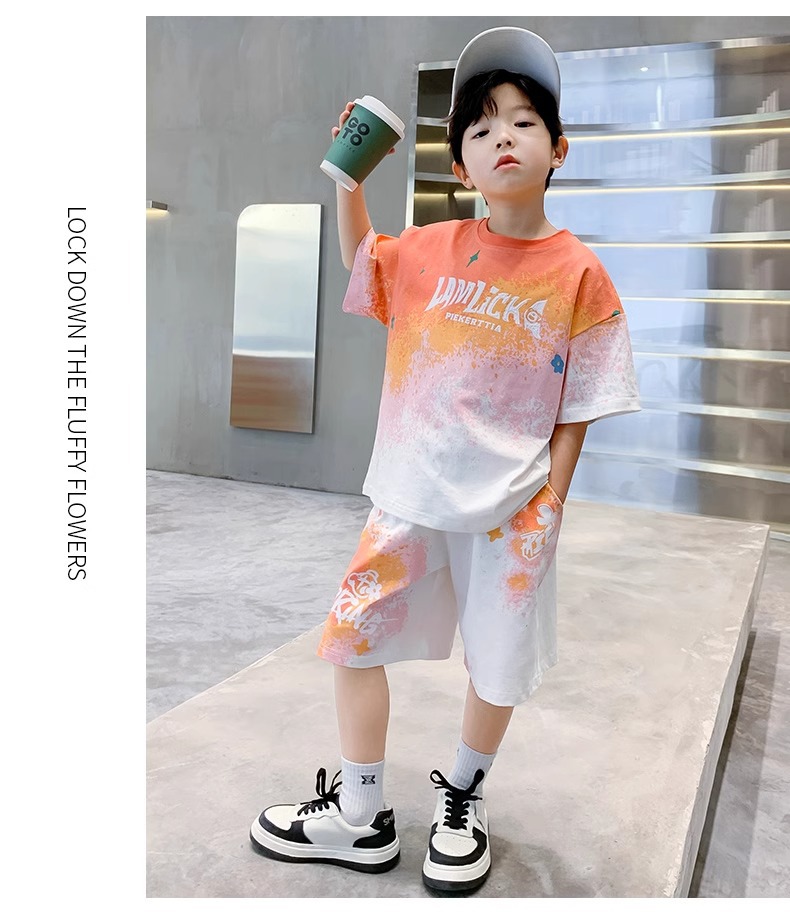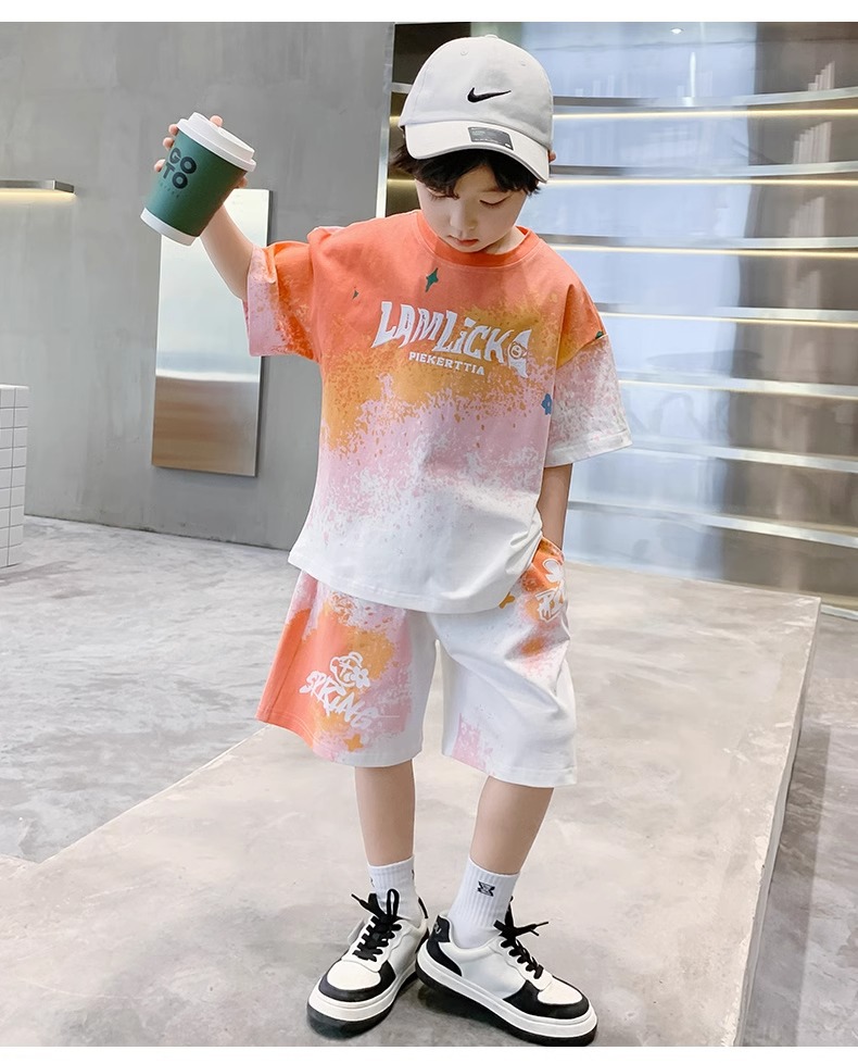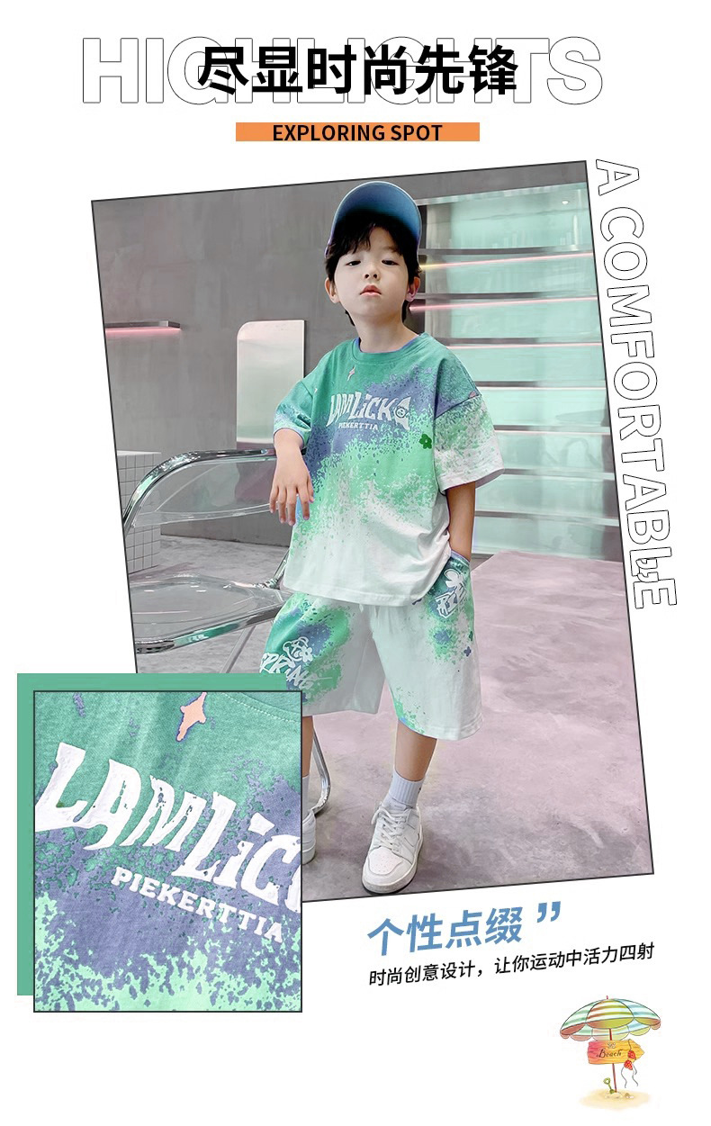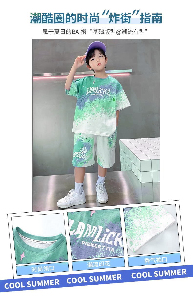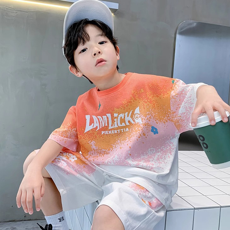 소년 여름 정장 새로운 스타일 어린이 소년 스포츠 반팔 반바지 잘 생긴 중대형 어린이 캐주얼 스포츠 투피스 세트스토어 가기