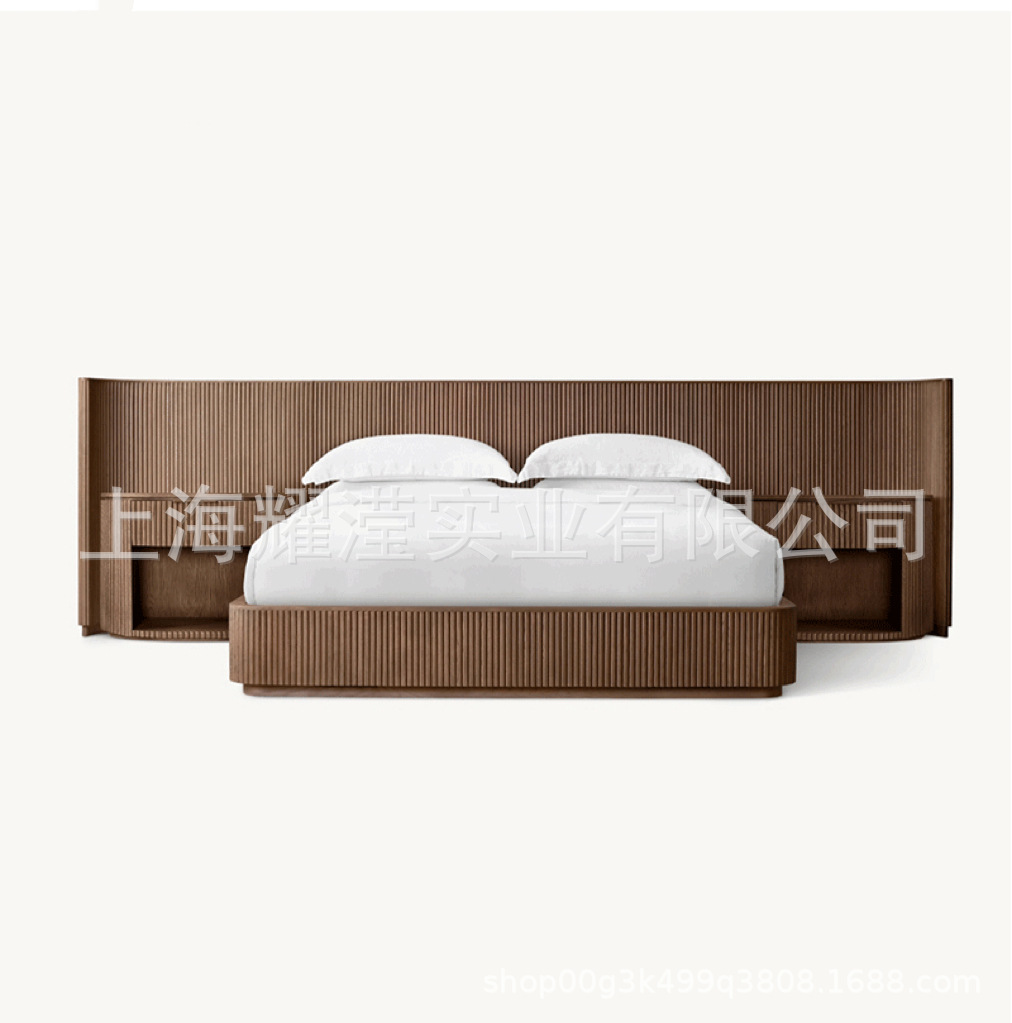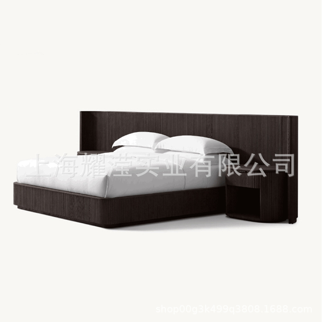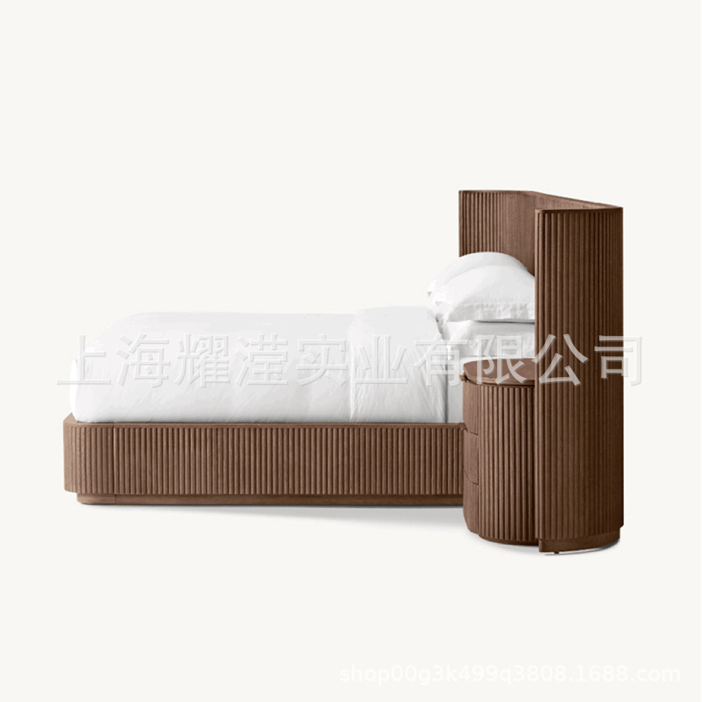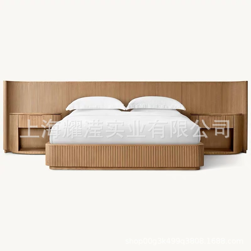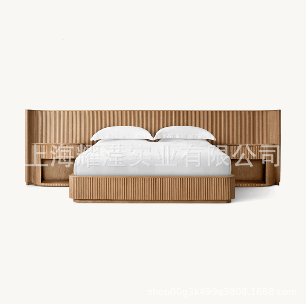 RH 미국식 현대적인 간단한 확장 배경 침대 오크 침대 맞춤형 침실 빌라 단단한 나무 침대 하이 엔드 더블 침대스토어 가기