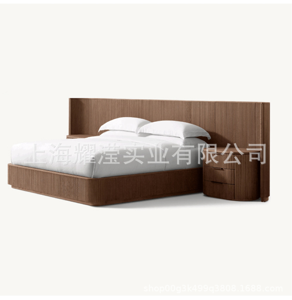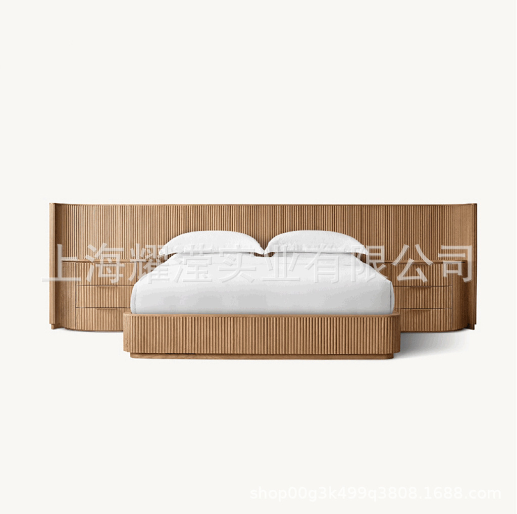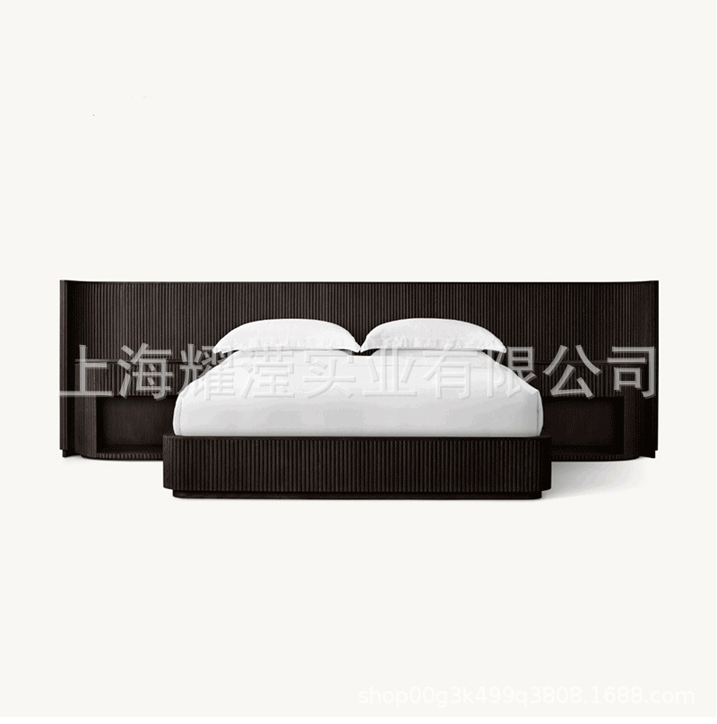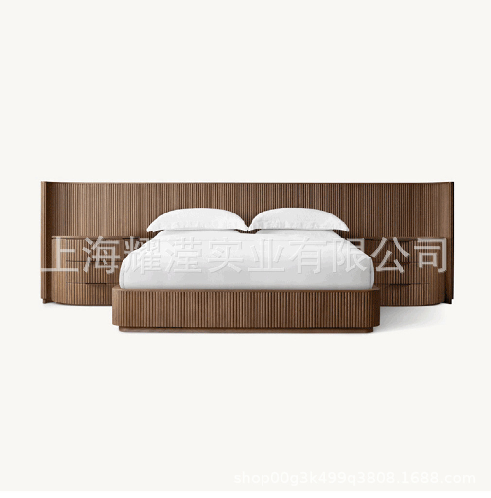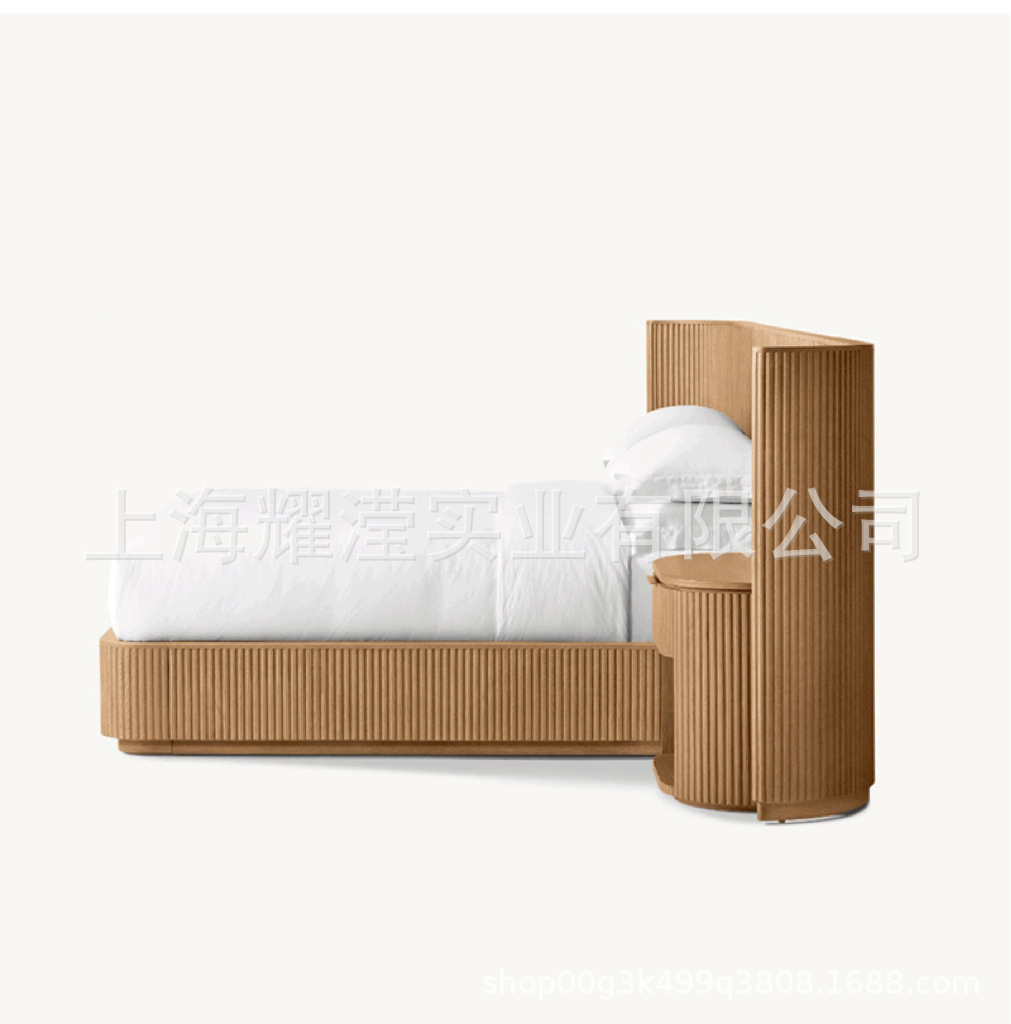 RH 미국식 현대적인 간단한 확장 배경 침대 오크 침대 맞춤형 침실 빌라 단단한 나무 침대 하이 엔드 더블 침대스토어 가기