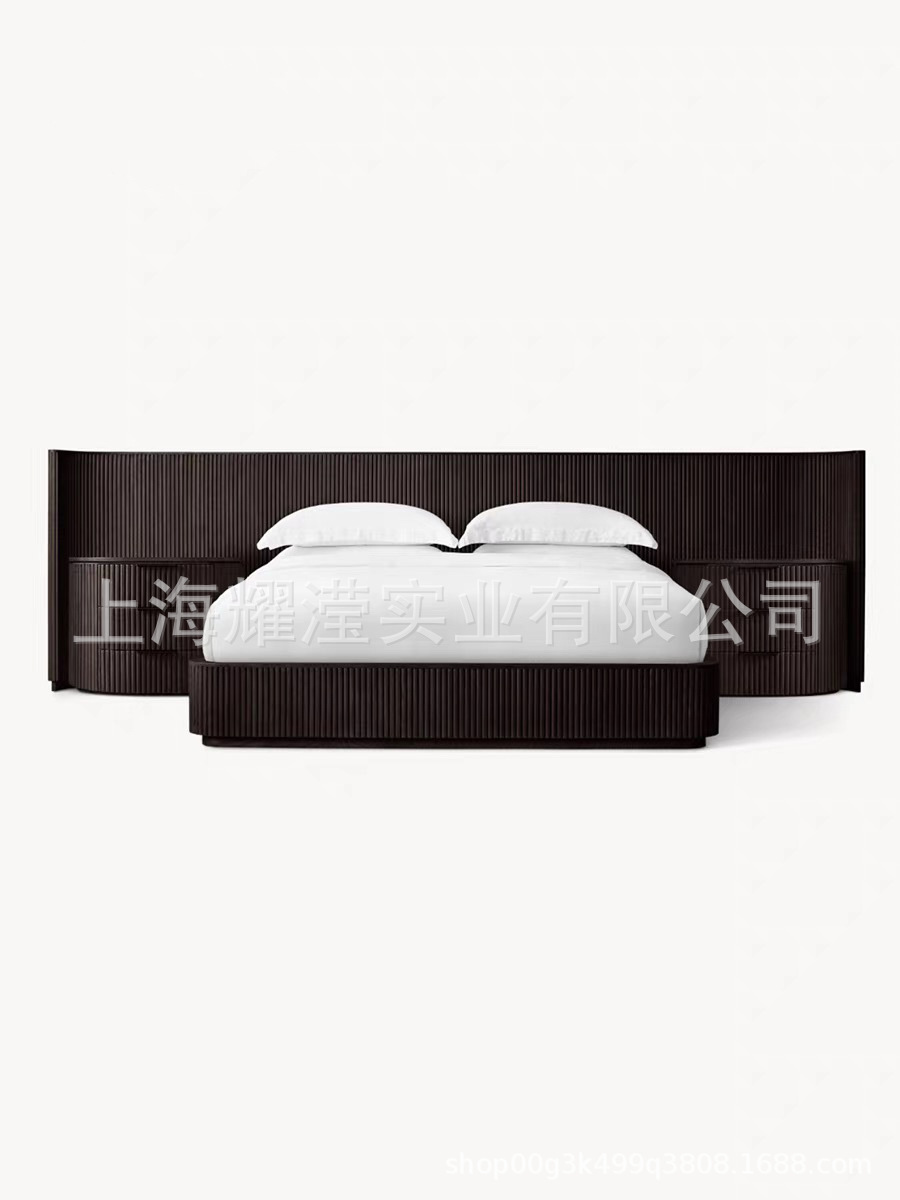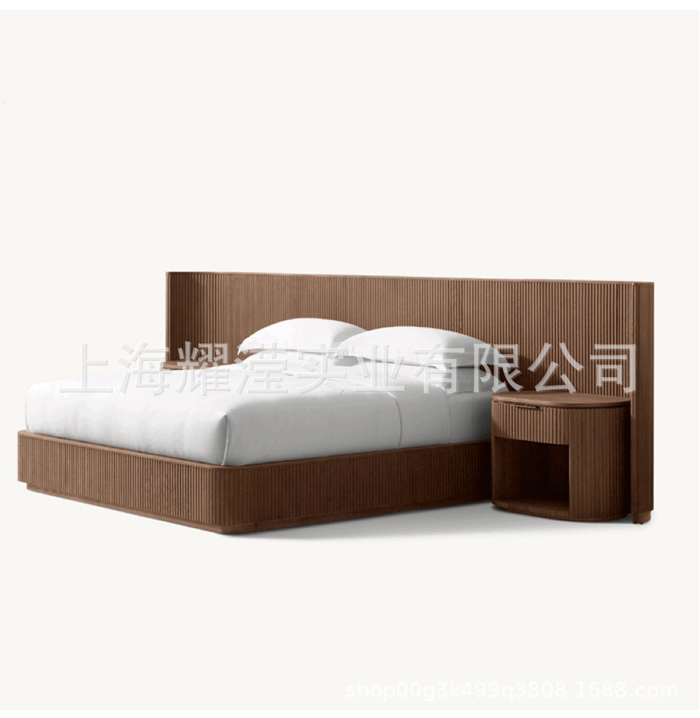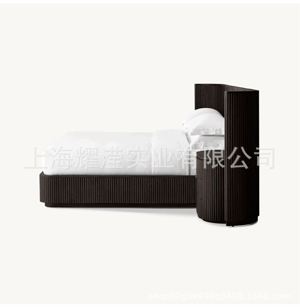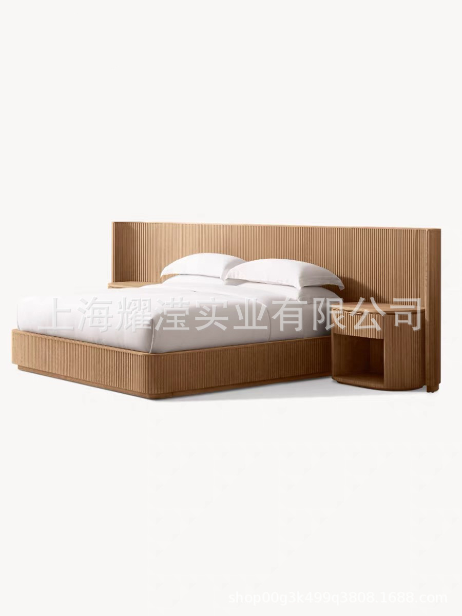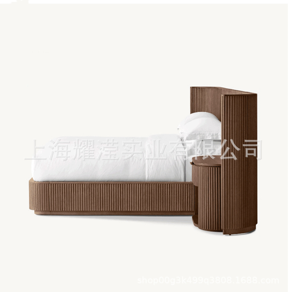 RH 미국식 현대적인 간단한 확장 배경 침대 오크 침대 맞춤형 침실 빌라 단단한 나무 침대 하이 엔드 더블 침대스토어 가기