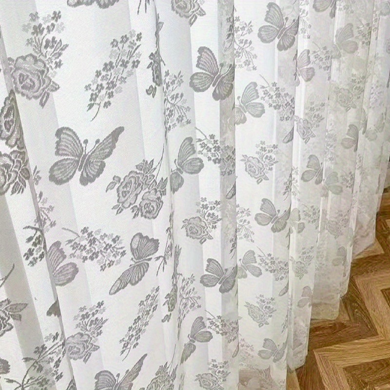 구멍이 뚫린 레이스 나비 커튼, 침실 발코니 프렌치 로맨틱 레이스 트리코타지 나비 사랑 꽃 창 스크린 빛 투과