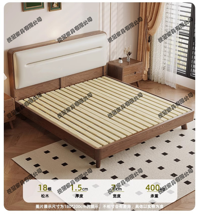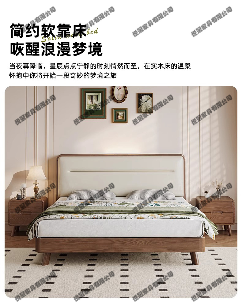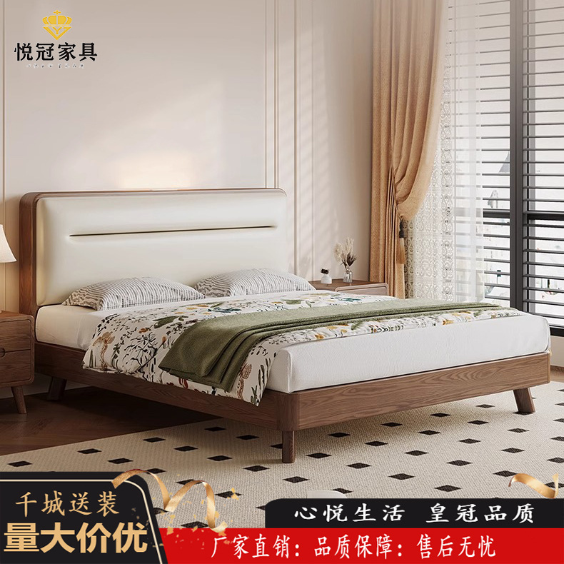북유럽 원목 침대 소프트 침대 애쉬 싱글 침대 1.8m 모던 심플 마스터 침실 더블 침대 1.5m 대형 침대스토어 가기
