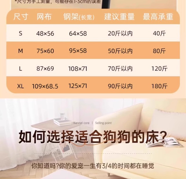 • 업그레이드 및 두꺼워짐 [메쉬*1] 애완동물 캠프 침대 [강력한 내하중 + 편안하고 통기성 + 지면에서 습기 방지]