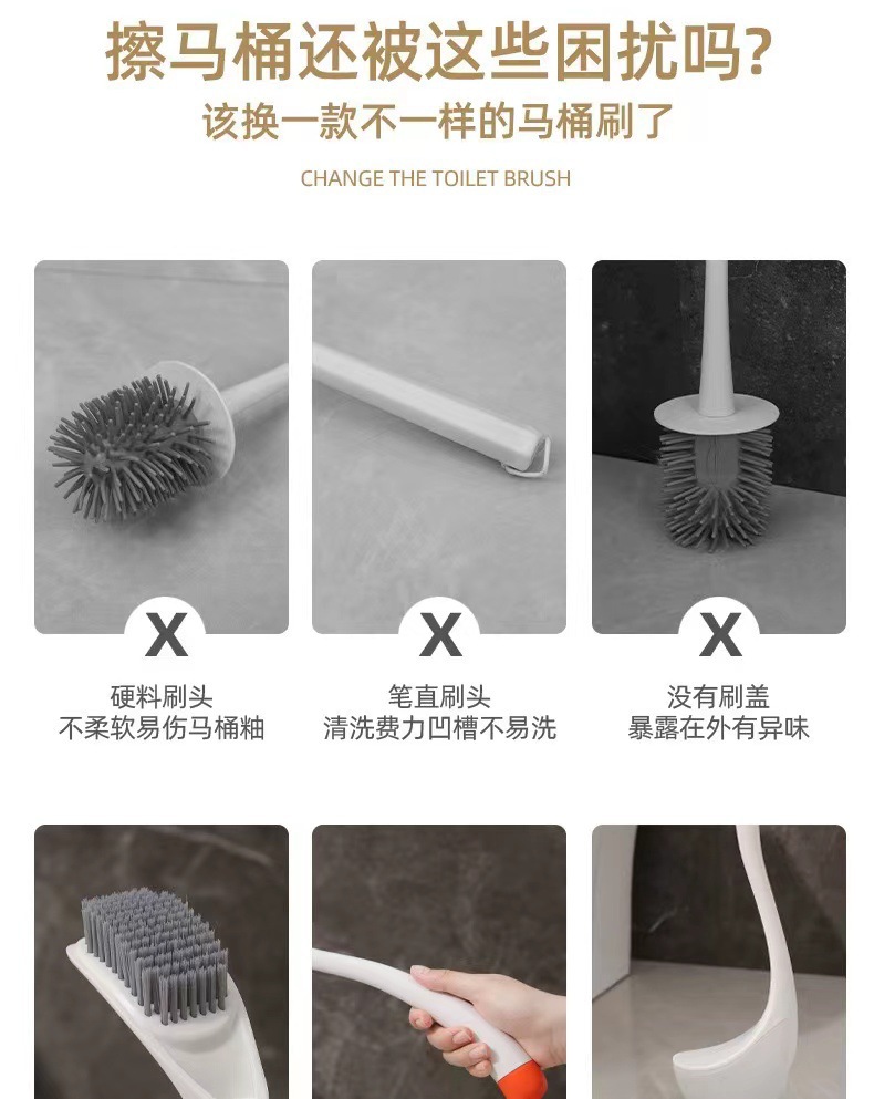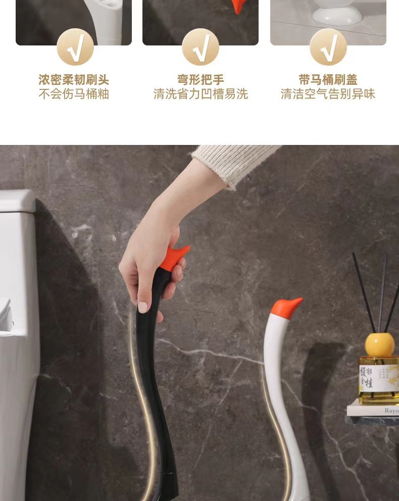 사각지대 없는 가정용 크로스보더 백조 변기 브러시, 창의적인 청소용 변기 세트, 손잡이가 긴 실리콘 브러시 재고 있음스토어 가기