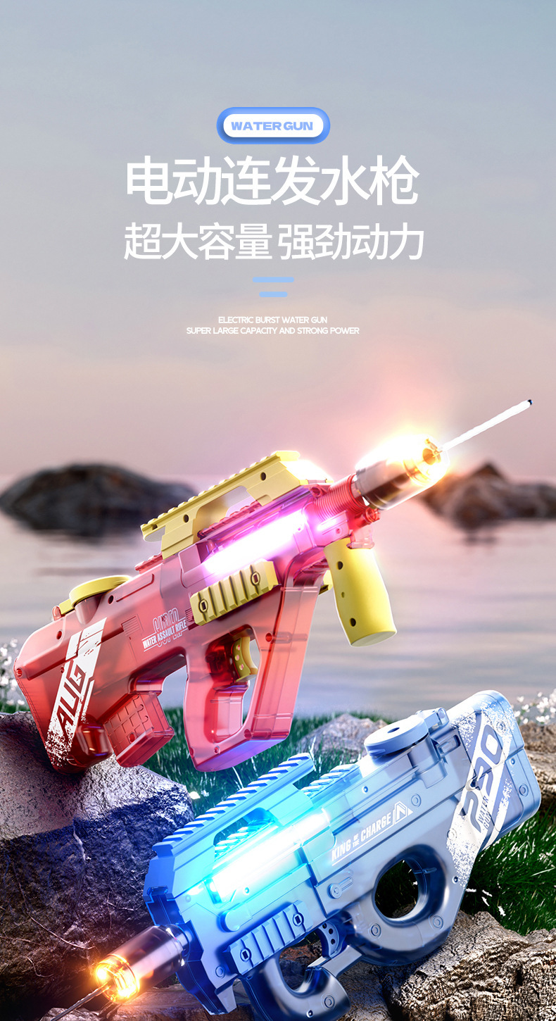 라이트 p90 전기 물 야외 흡수성 성인 연속 강력한 범위 전투 여름 물 장난감 도매 배송스토어 가기