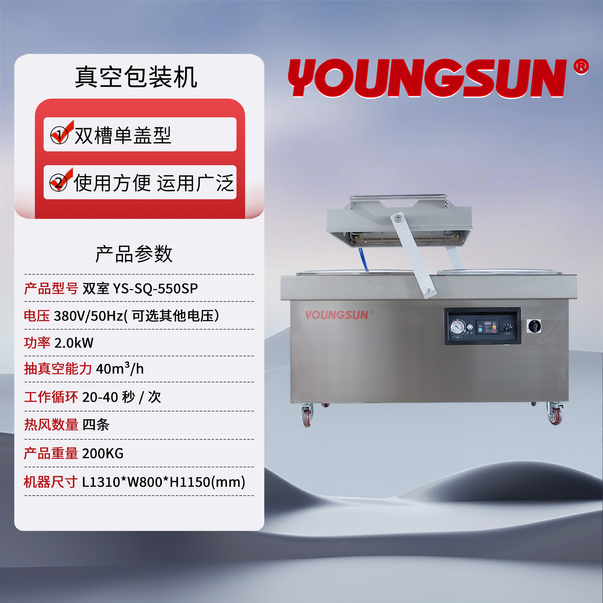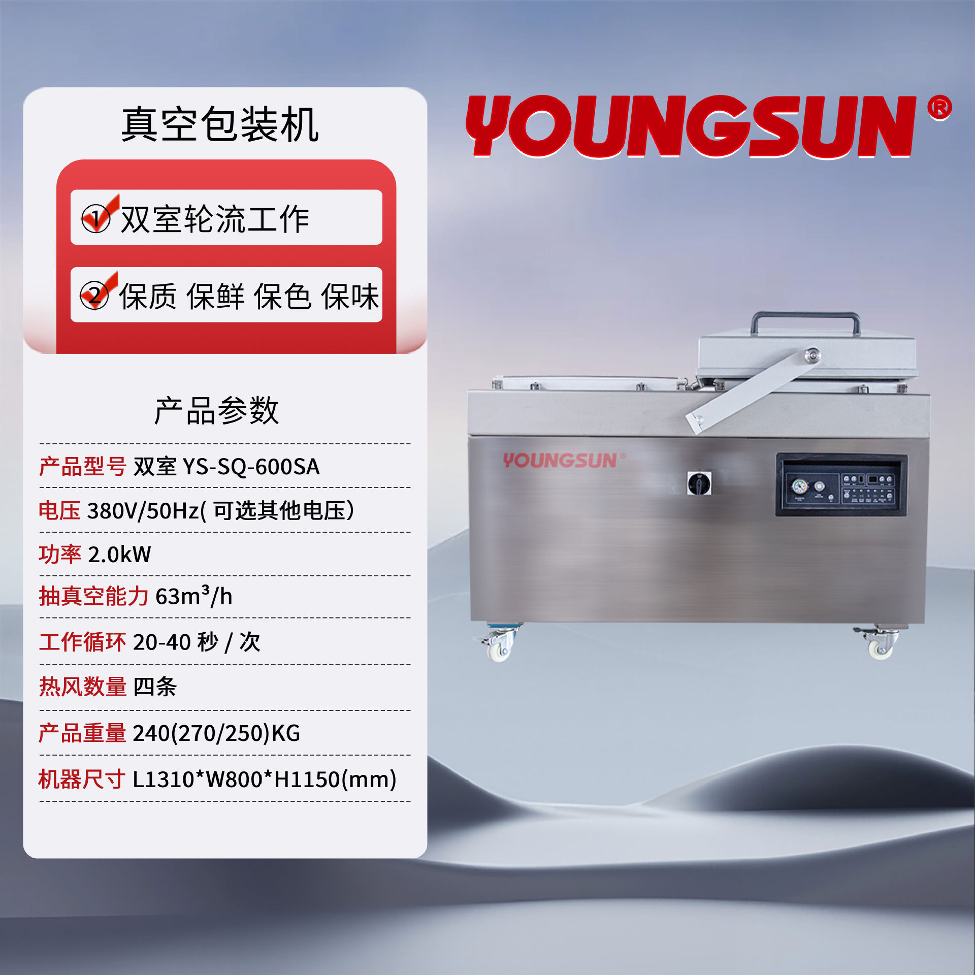 Yongchuang 진공 포장기 열 밀봉 이중 챔버 식품 차 습식 및 건식 이중 용도 완전 자동 산업 등급 대형 흡입스토어 가기