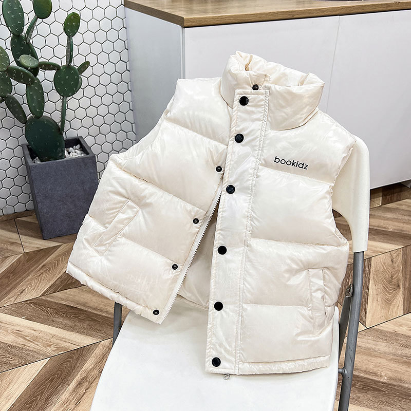2025 아동용 다운 코튼 조끼 두꺼운 스탠드 칼라 코튼 조끼 남성과 여성 중대형 아동용 코튼 의류 가을, 겨울 겉옷 조끼 트렌드스토어 가기
