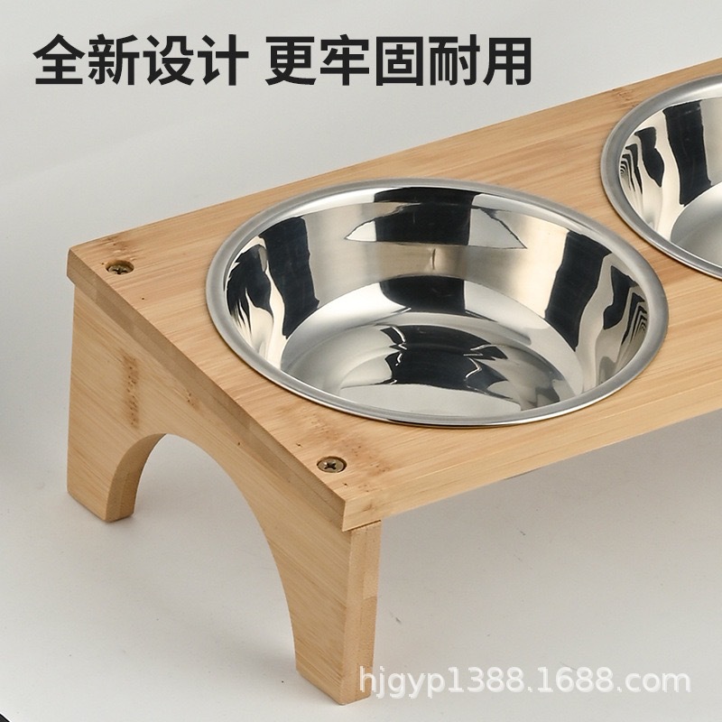 국경 간 ins 단단한 나무 대나무 애완 동물 용품 고양이 사료 그릇 스테인레스 스틸 그릇 넘어짐 방지 애완 동물 고양이 및 개 사료 그릇스토어 가기