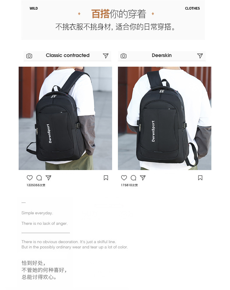 男士双肩包背包大容量高中初中小学生书包男女旅游旅行背包电脑包
