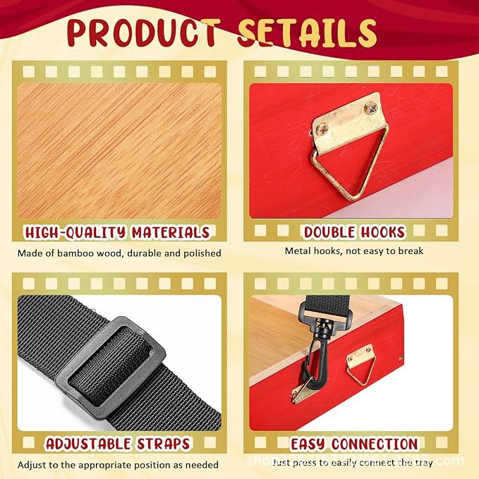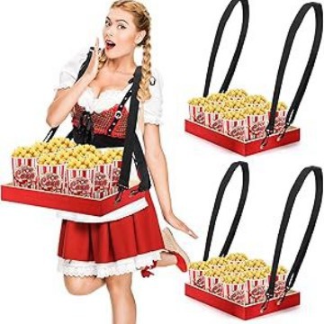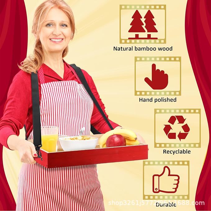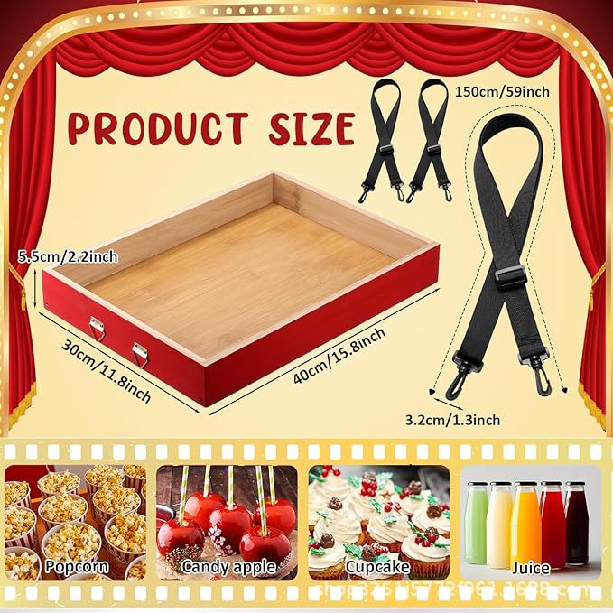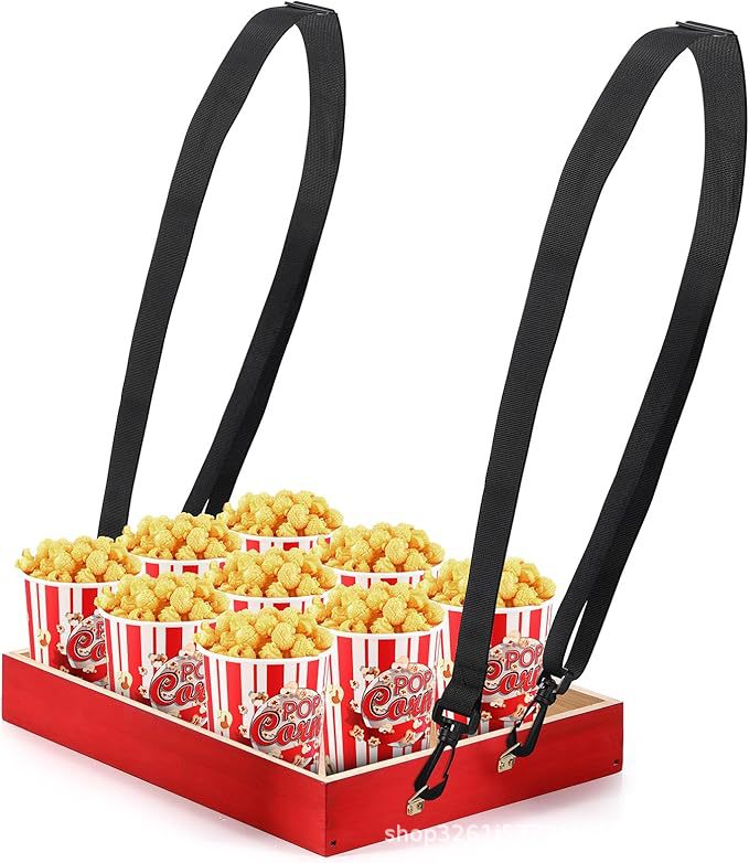 나무 어깨 끈 트레이 단단한 나무 팝콘 스낵 트레이 나무 소매 서비스 트레이 팝콘 음료 홀더스토어 가기