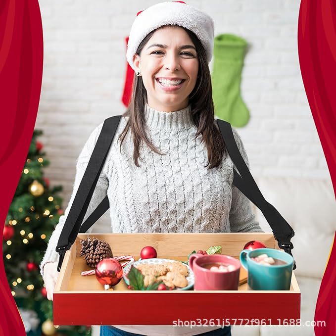 나무 어깨 끈 트레이 단단한 나무 팝콘 스낵 트레이 나무 소매 서비스 트레이 팝콘 음료 홀더