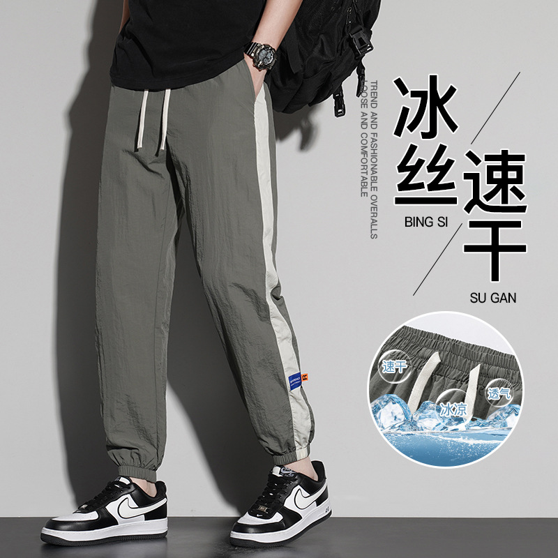 2025년 신형 나일론 아이스 실크 남성용 바지, 트렌디한 홍콩 스타일 패션 드레이프 레깅스, 속건성, 슬리밍, 등산용 핫 스타일스토어 가기