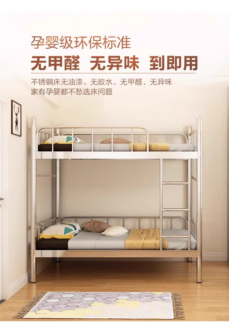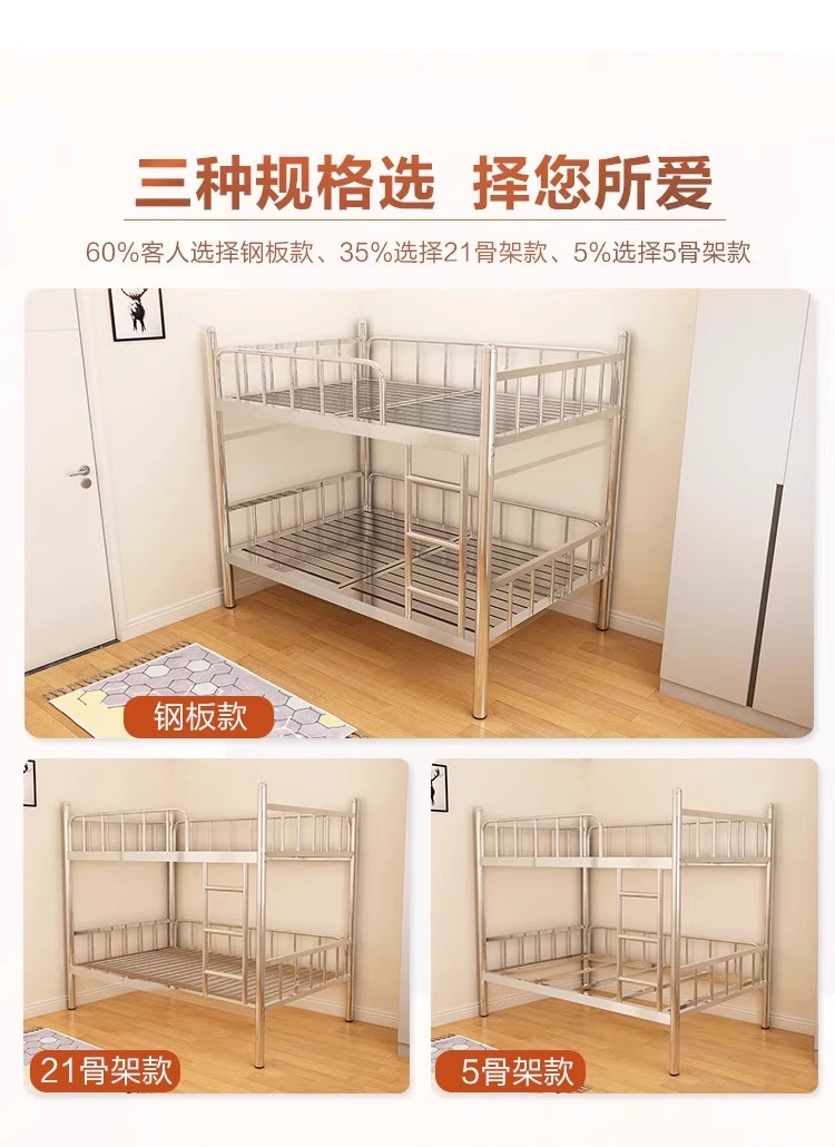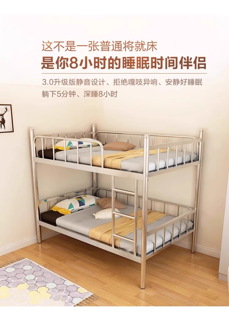 304 스테인레스 스틸 두꺼운 이층 침대 높고 낮은 이층 침대 학교 이층 침대 강철 프레임 침대 내구성 직원 기숙사 침대