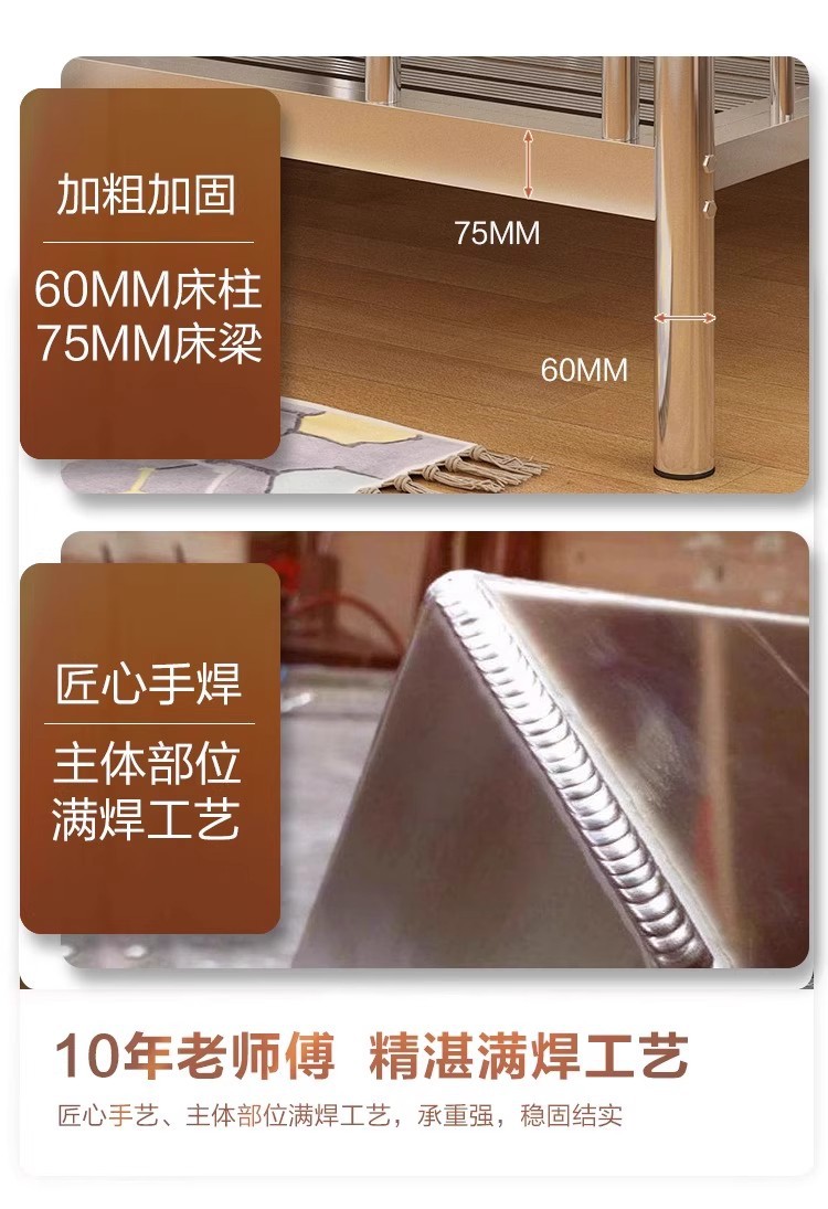 304 스테인레스 스틸 두꺼운 이층 침대 높고 낮은 이층 침대 학교 이층 침대 강철 프레임 침대 내구성 직원 기숙사 침대스토어 가기