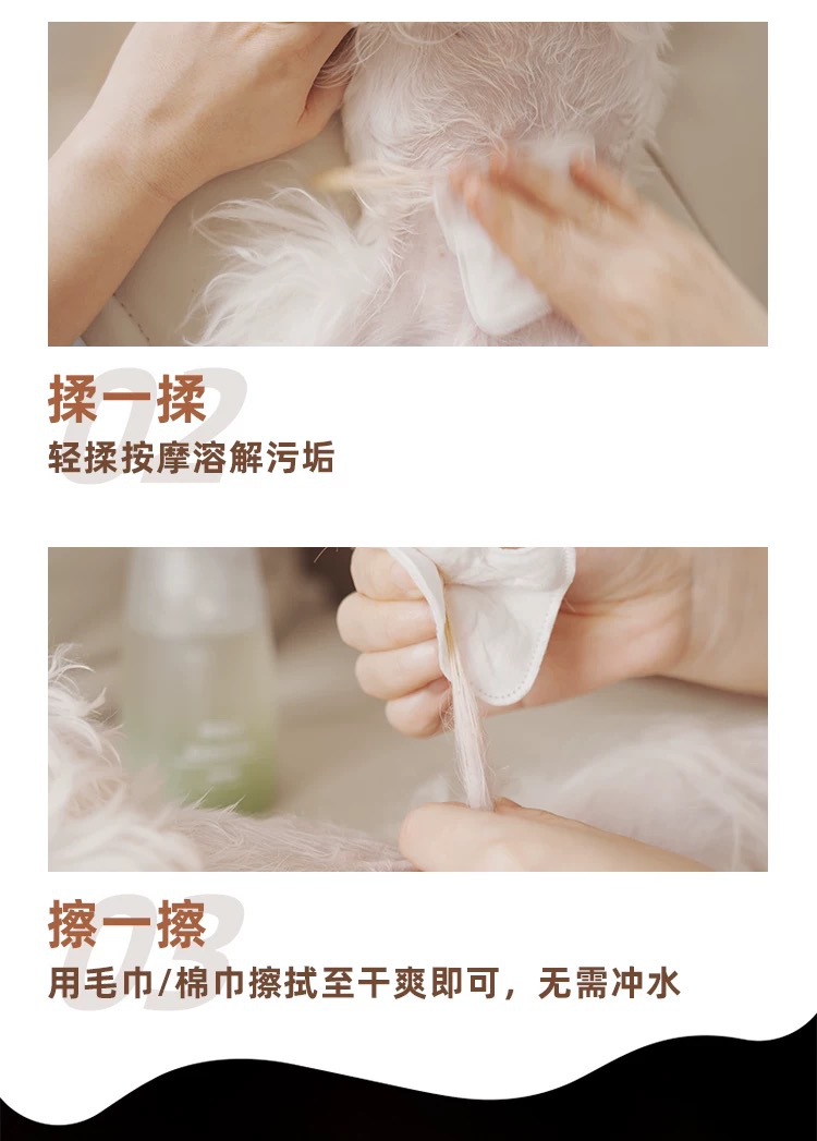 Qiyujiji 아미노산 클렌징 무스 개와 고양이 드라이 클리닝은 기름과 노란 수염을 제거합니다. 고양이와 개를 위한 특수 클렌징 목욕