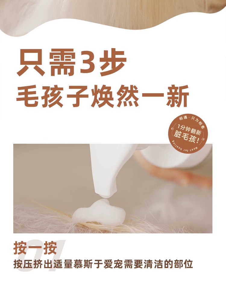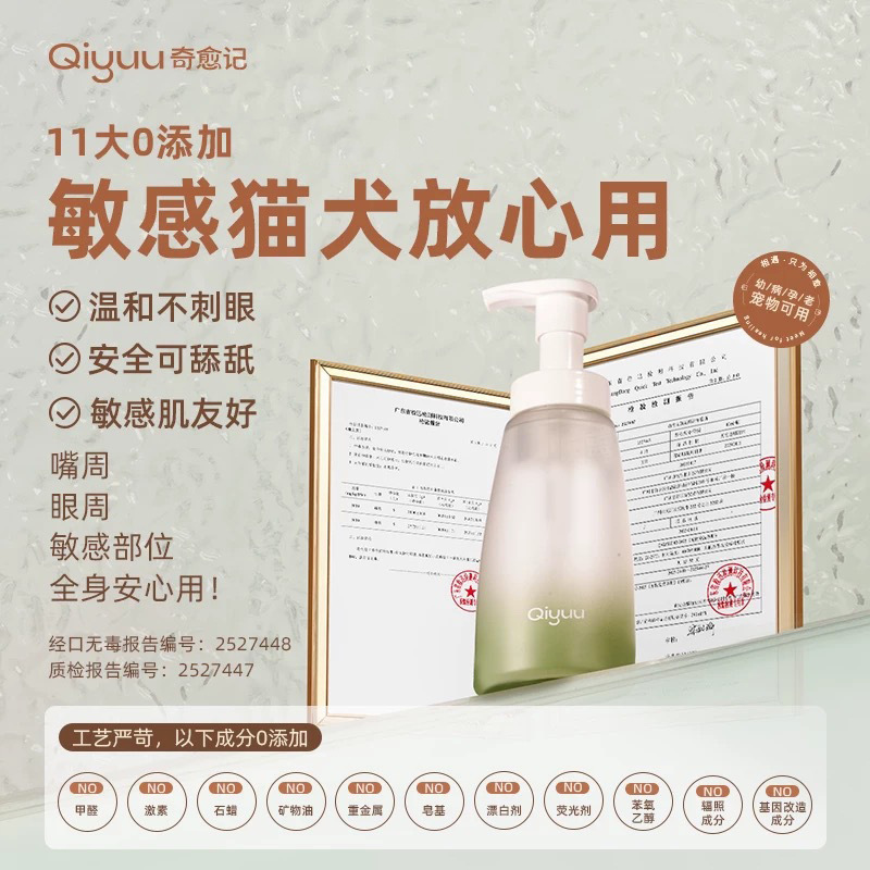 Qiyujiji 아미노산 클렌징 무스 개와 고양이 드라이 클리닝은 기름과 노란 수염을 제거합니다. 고양이와 개를 위한 특수 클렌징 목욕스토어 가기