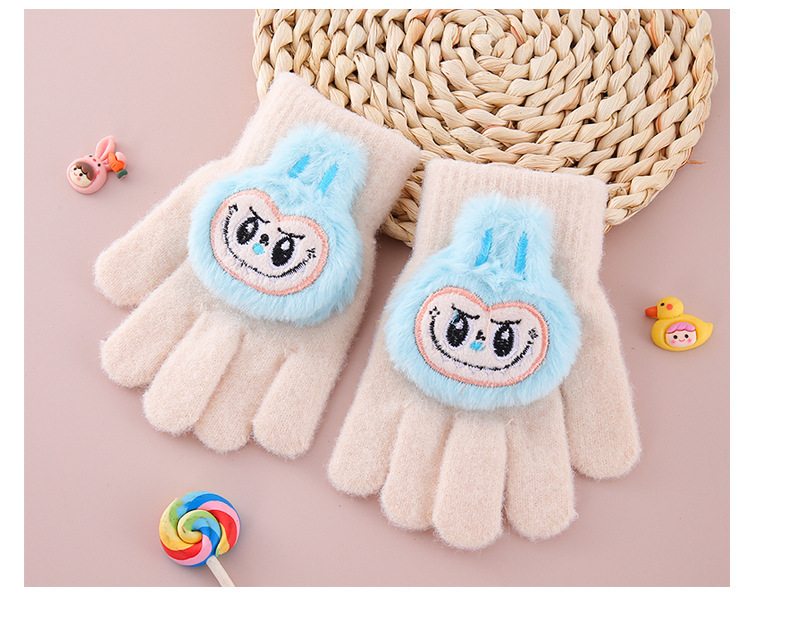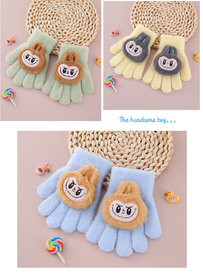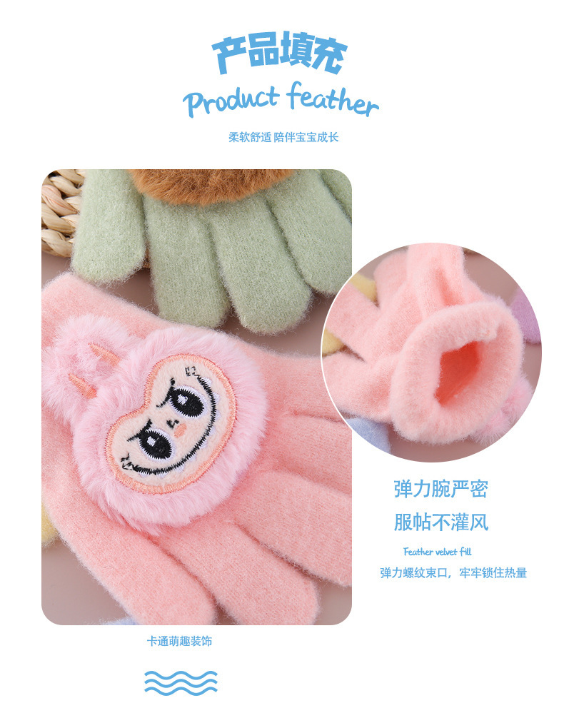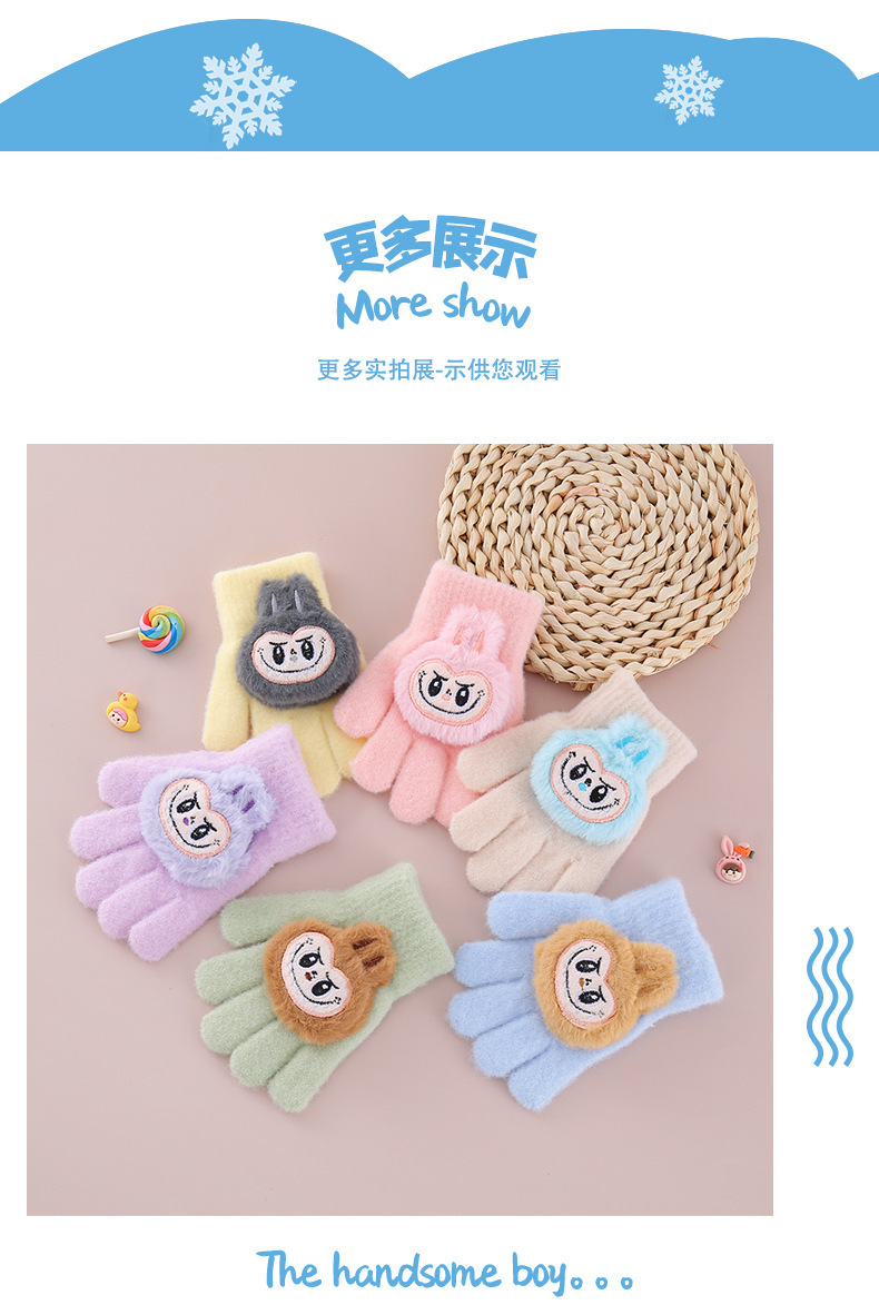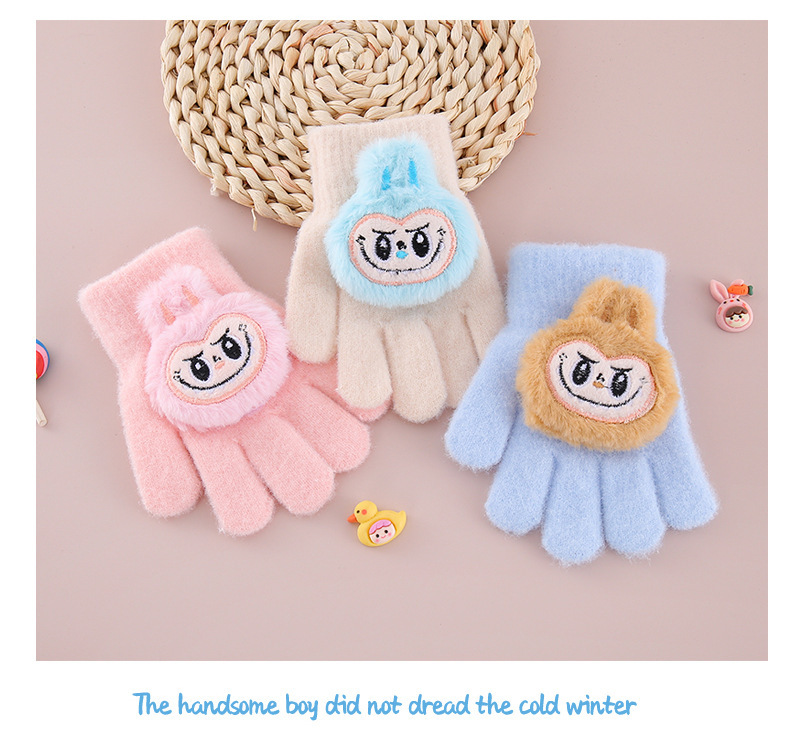 겨울철 귀여운 만화 소년 소녀용 어린이 장갑, 따뜻하고 방한 5손가락 5-10 니트 초등학생 밍크 벨벳 장갑스토어 가기