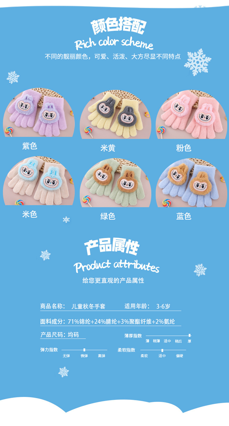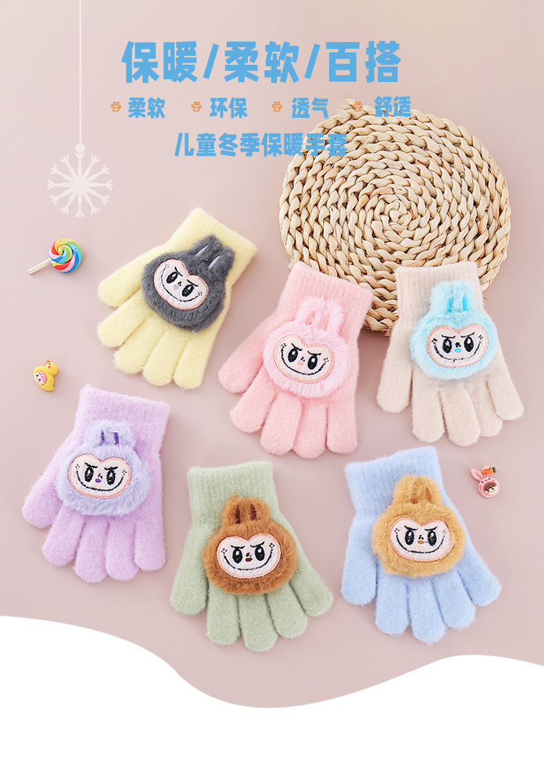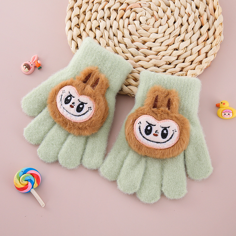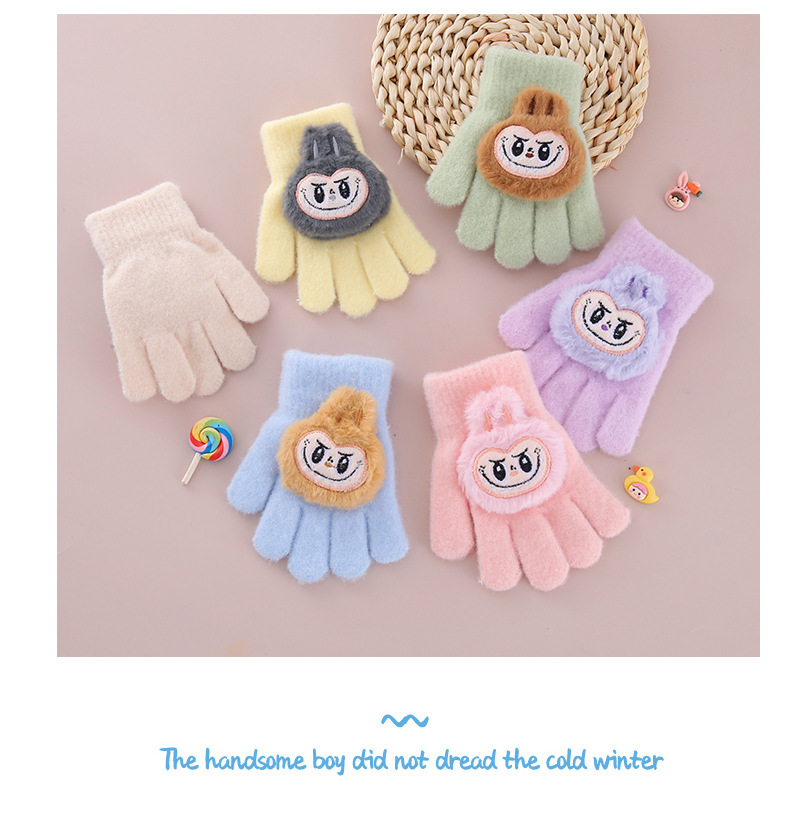 겨울철 귀여운 만화 소년 소녀용 어린이 장갑, 따뜻하고 방한 5손가락 5-10 니트 초등학생 밍크 벨벳 장갑스토어 가기