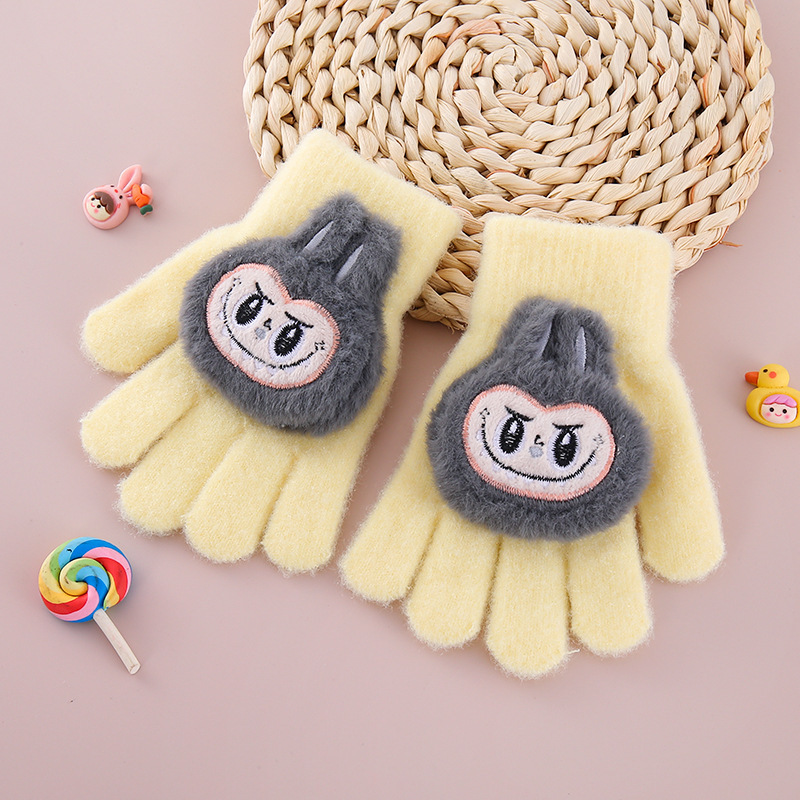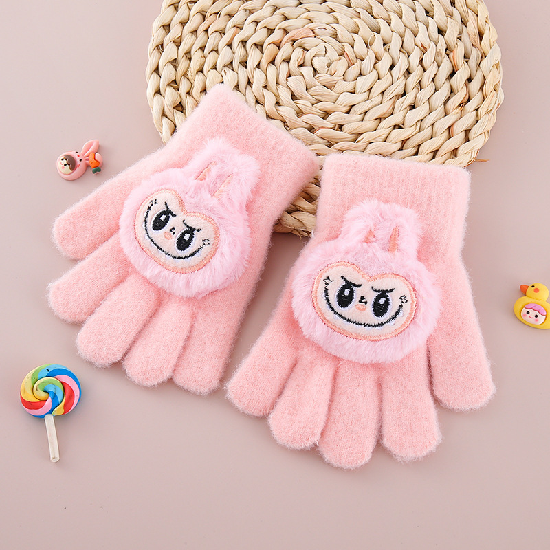 겨울철 귀여운 만화 소년 소녀용 어린이 장갑, 따뜻하고 방한 5손가락 5-10 니트 초등학생 밍크 벨벳 장갑