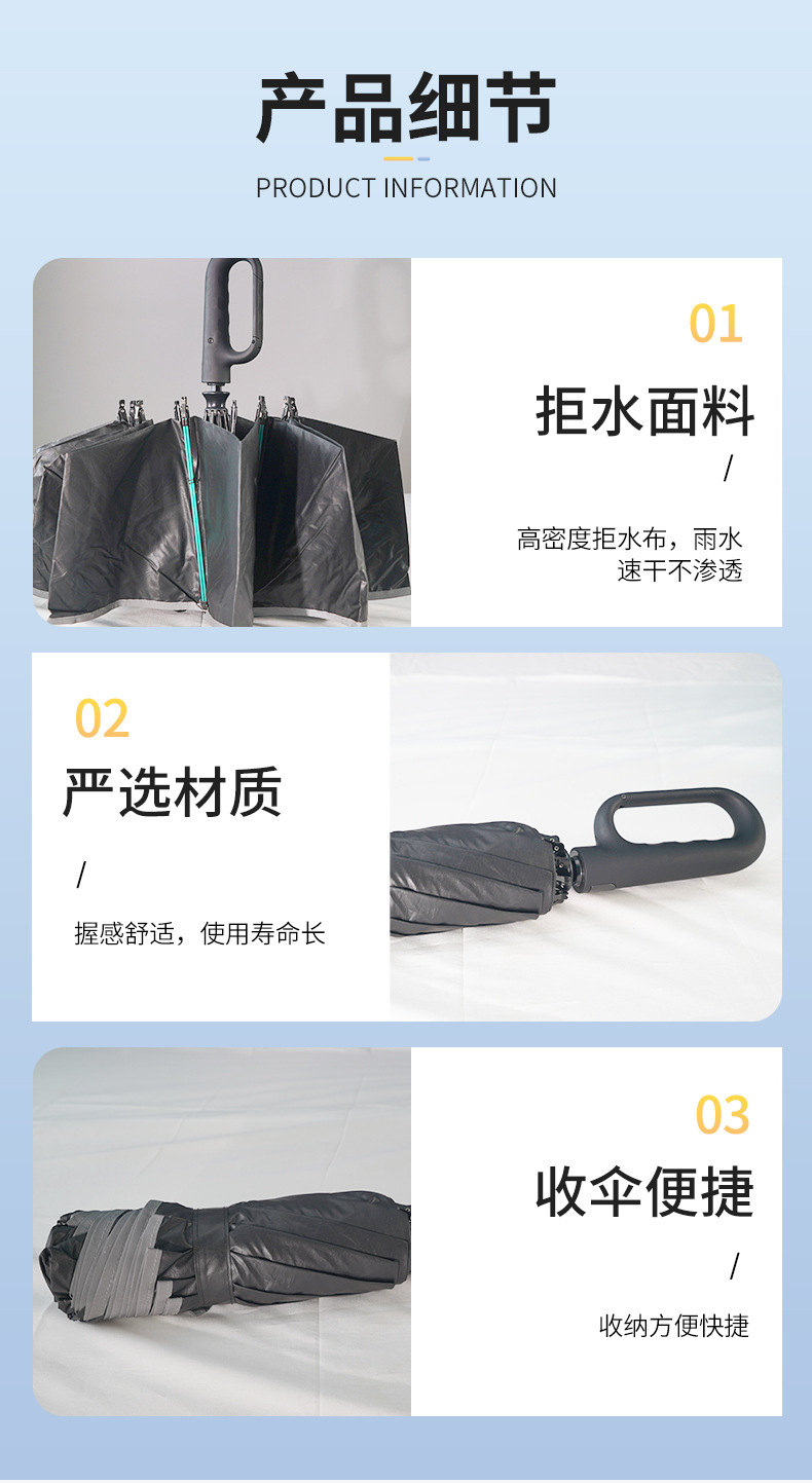 23인치 10K 70% off 자동 개폐형 역방향 우산, 다양한 색상 맞춤 제작, 블랙 글로시 우산, 자외선 차단 기능