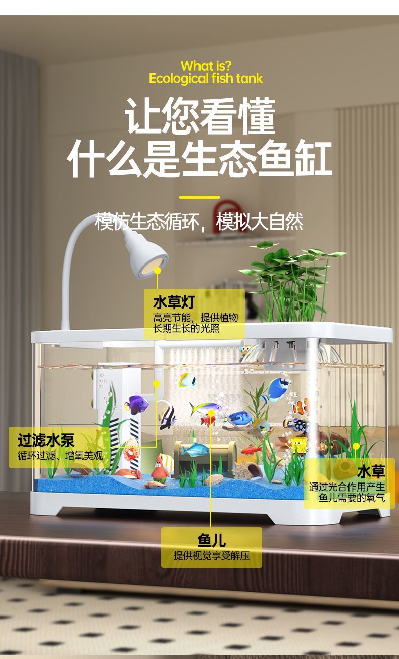 수조 필터링 및 산소 제조기 일체형 기계, 중소형 거실, 가정용 데스크탑, 커버 조경, 2025년 신형 금붕어 수조스토어 가기