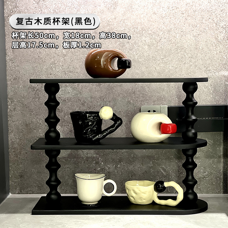 중세 스타일 다층 스토리지 랙 디스플레이 랙 홈 나무 데스크탑 컵 홀더 화장품 및 향수 스토리지 랙