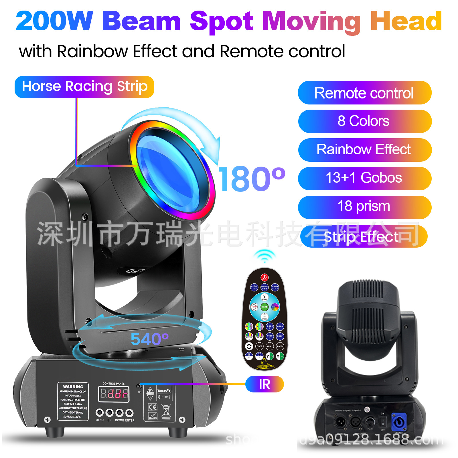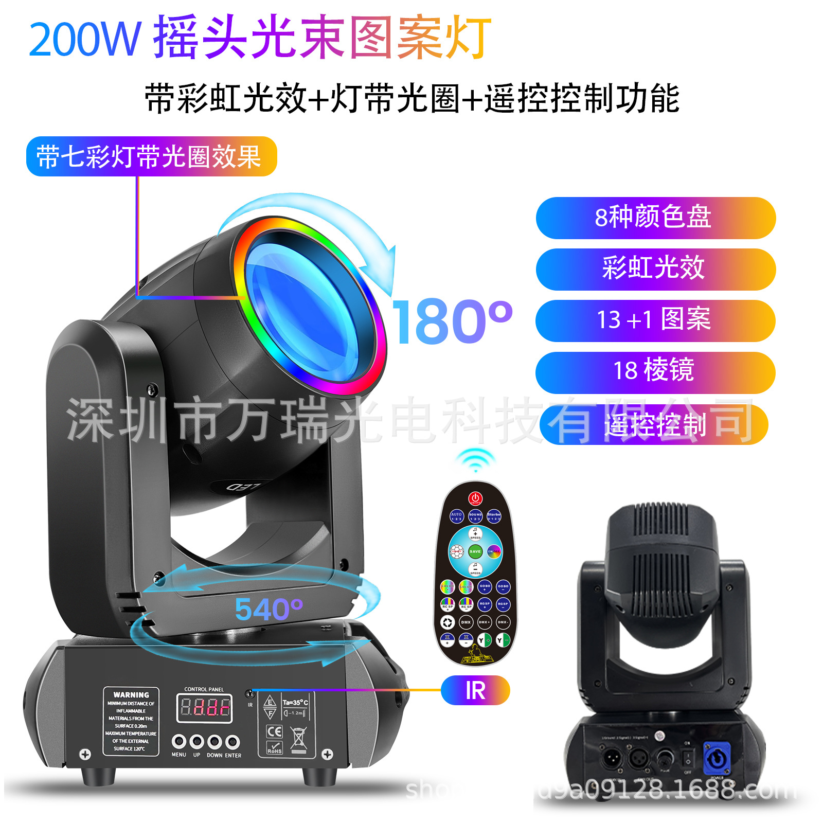 새로운 200w230w250w 레인보우 원격 제어 라이트 스트립 작은 흔들리는 패턴 빔 라이트 LED 무대 스트로브 워시