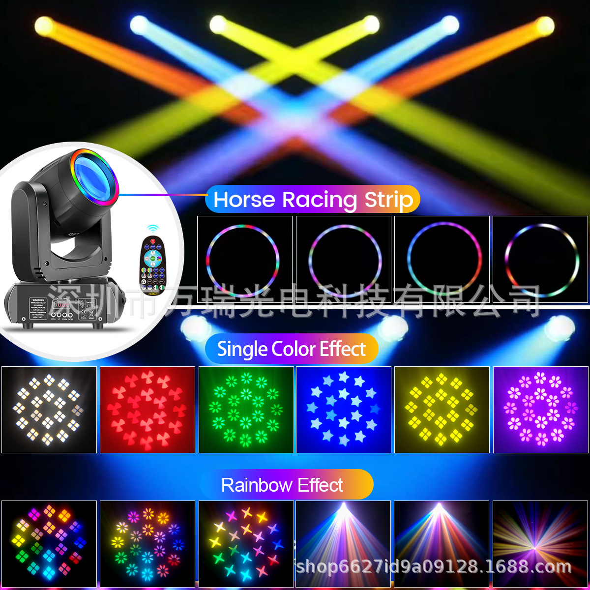 새로운 200w230w250w 레인보우 원격 제어 라이트 스트립 작은 흔들리는 패턴 빔 라이트 LED 무대 스트로브 워시스토어 가기