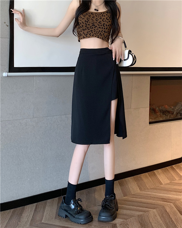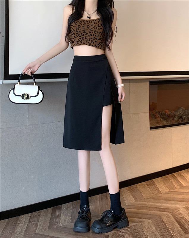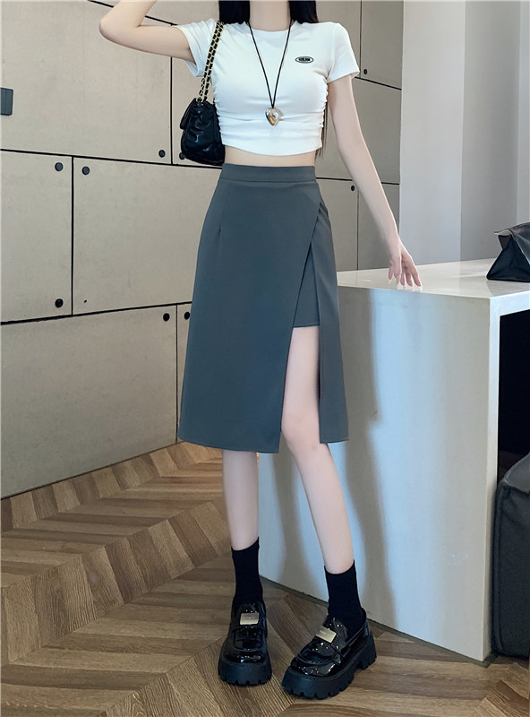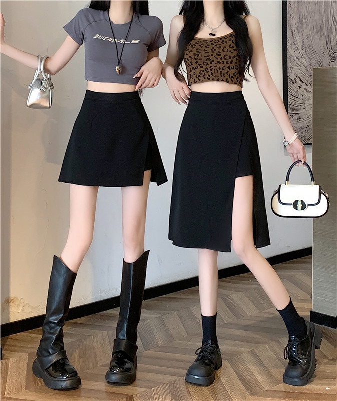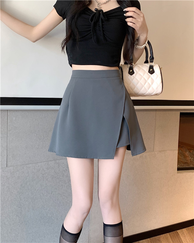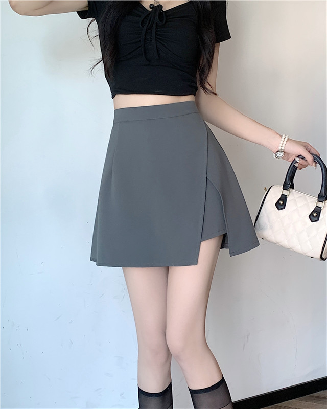 여름에 살찐 여성을 위한 플러스 사이즈 하이웨이스트 슬릿 블랙 스커트, 슬리밍 배 커버 팬츠 스커트, 틈새 디자인 짧은 스커트