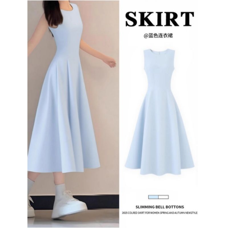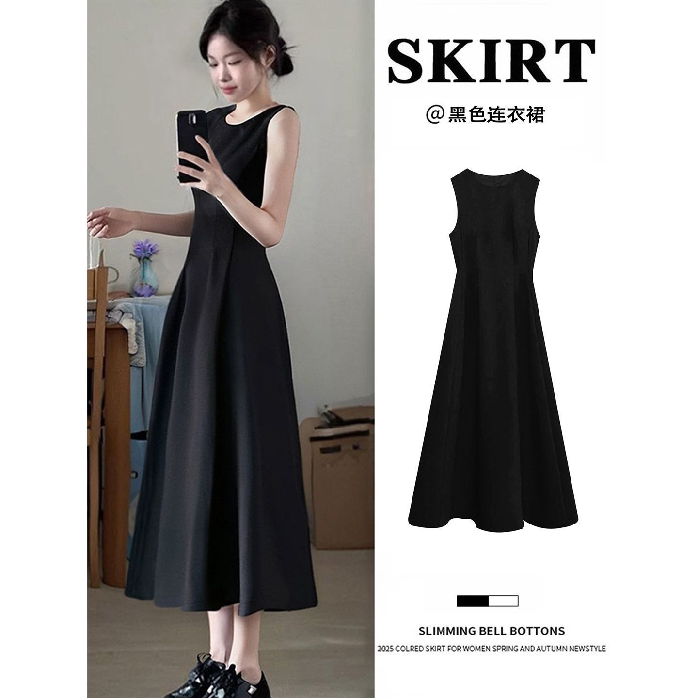 리틀 블랙 스커트 블랙 민소매 드레스 여성 여름 프렌치 햅번 스타일 하이 엔드 A 라인 핀치 허리 롱 스커트스토어 가기