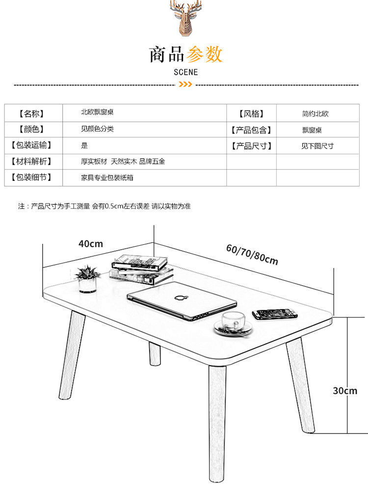 메이플 테이블 침실 창문 작은 낮은 테이블 침대 접이식 책상 발코니 작은 커피 테이블 학습 테이블 스타일 공급스토어 가기