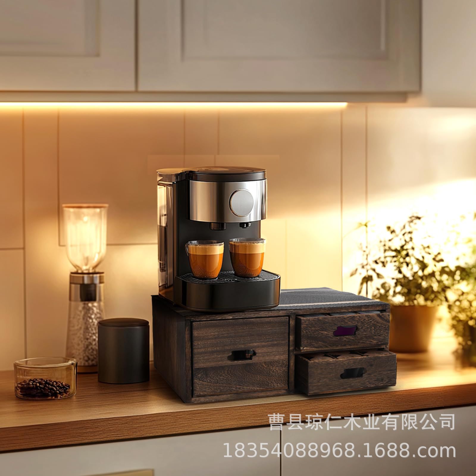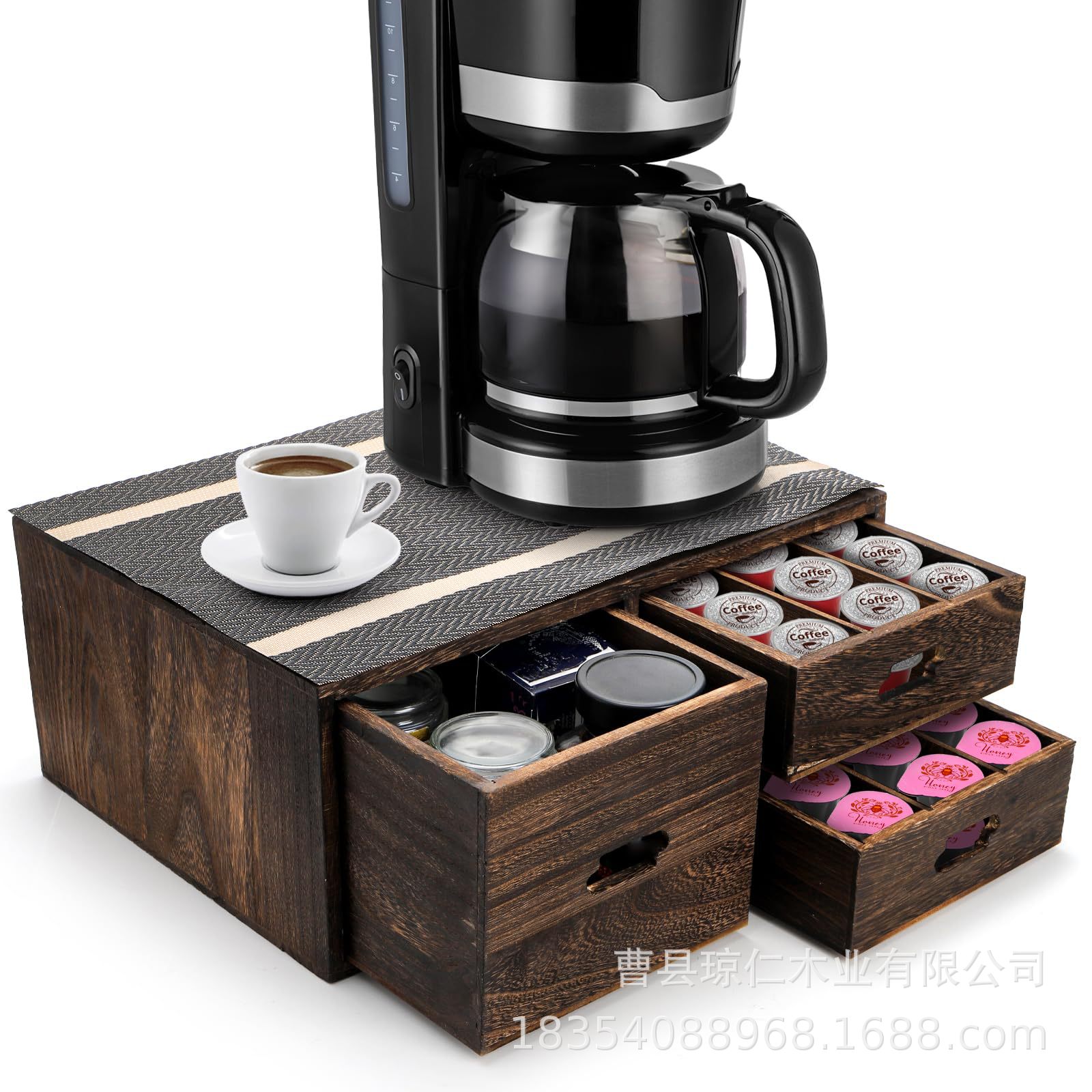 나무 커피 캡슐 상자 커피 머신 기본 브래킷 멀티 그리드 서랍 정리 상자 가정용 차 세트 보관 및 정리 랙스토어 가기