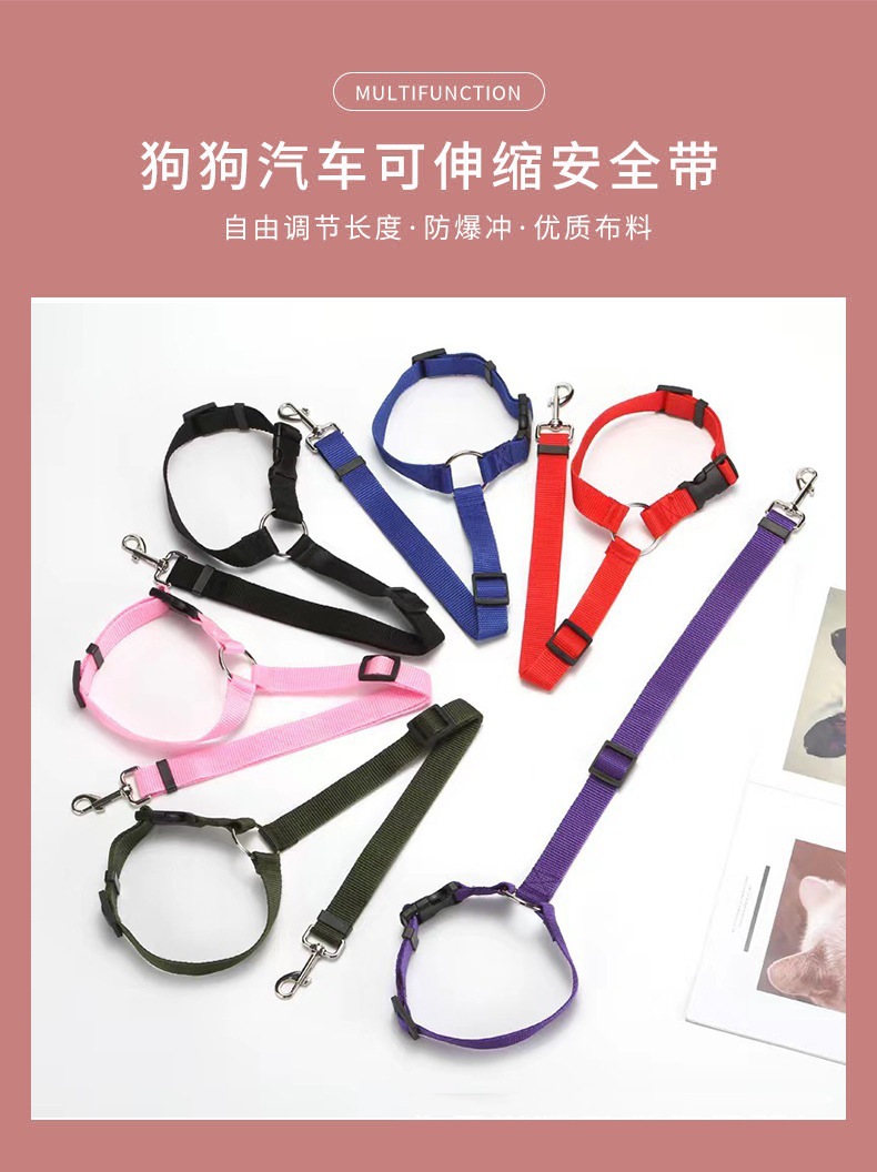 국경 간 애완 동물 자동차 안전 벨트 조정 가능한 대형 및 중형 개와 고양이 자동차 견인 로프 자동차 머리 받침 견인 로프