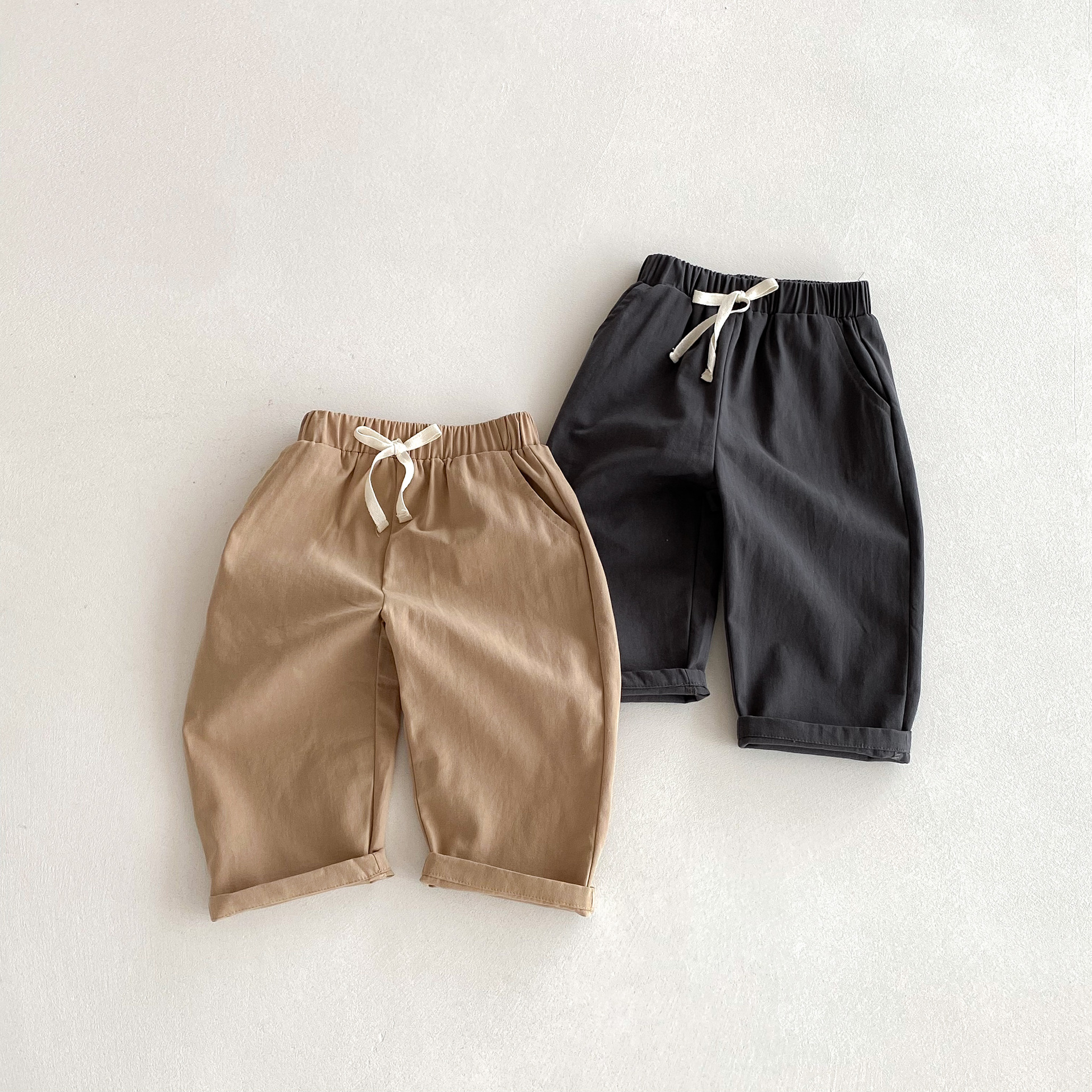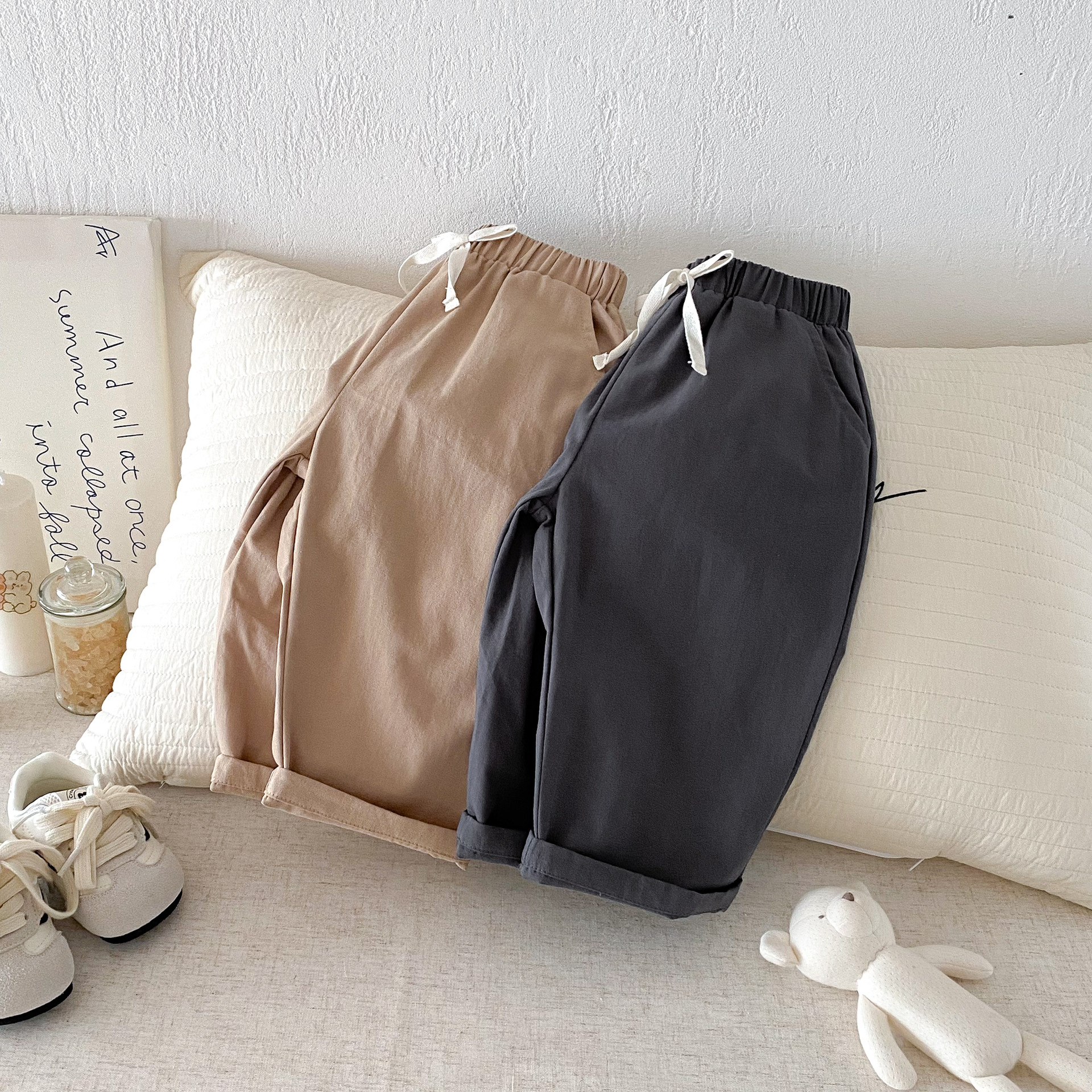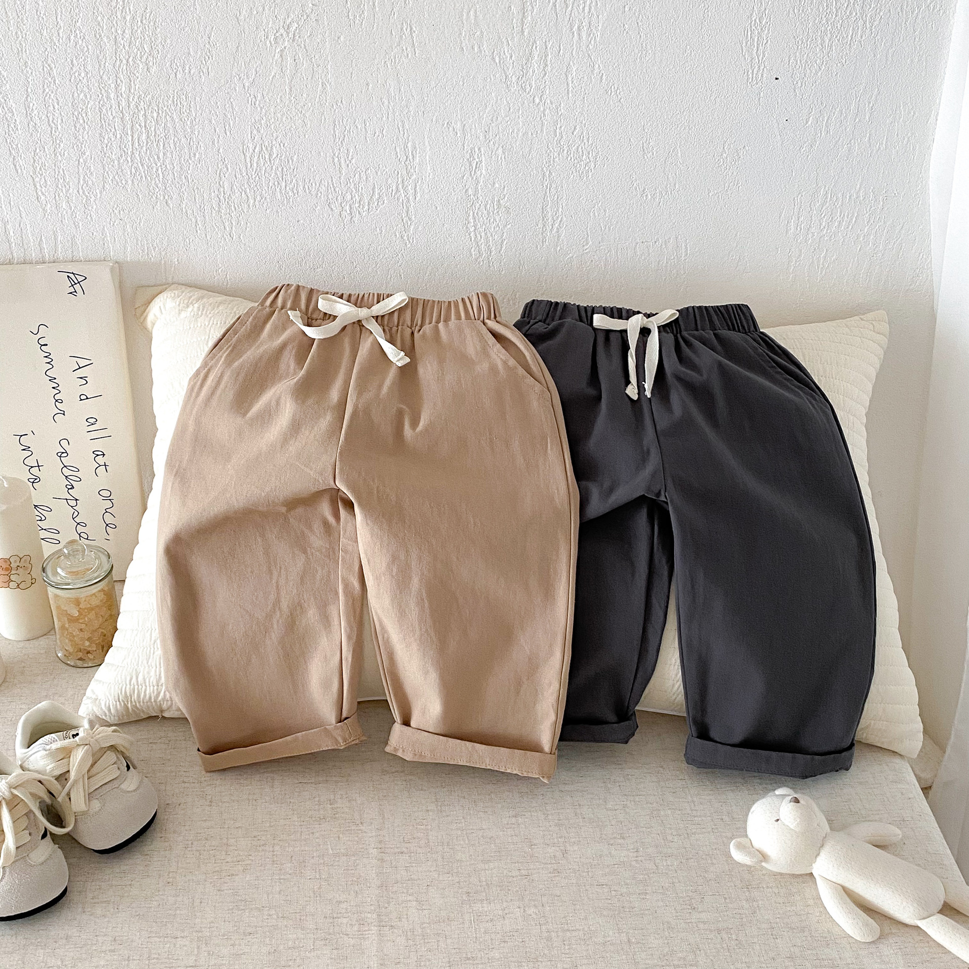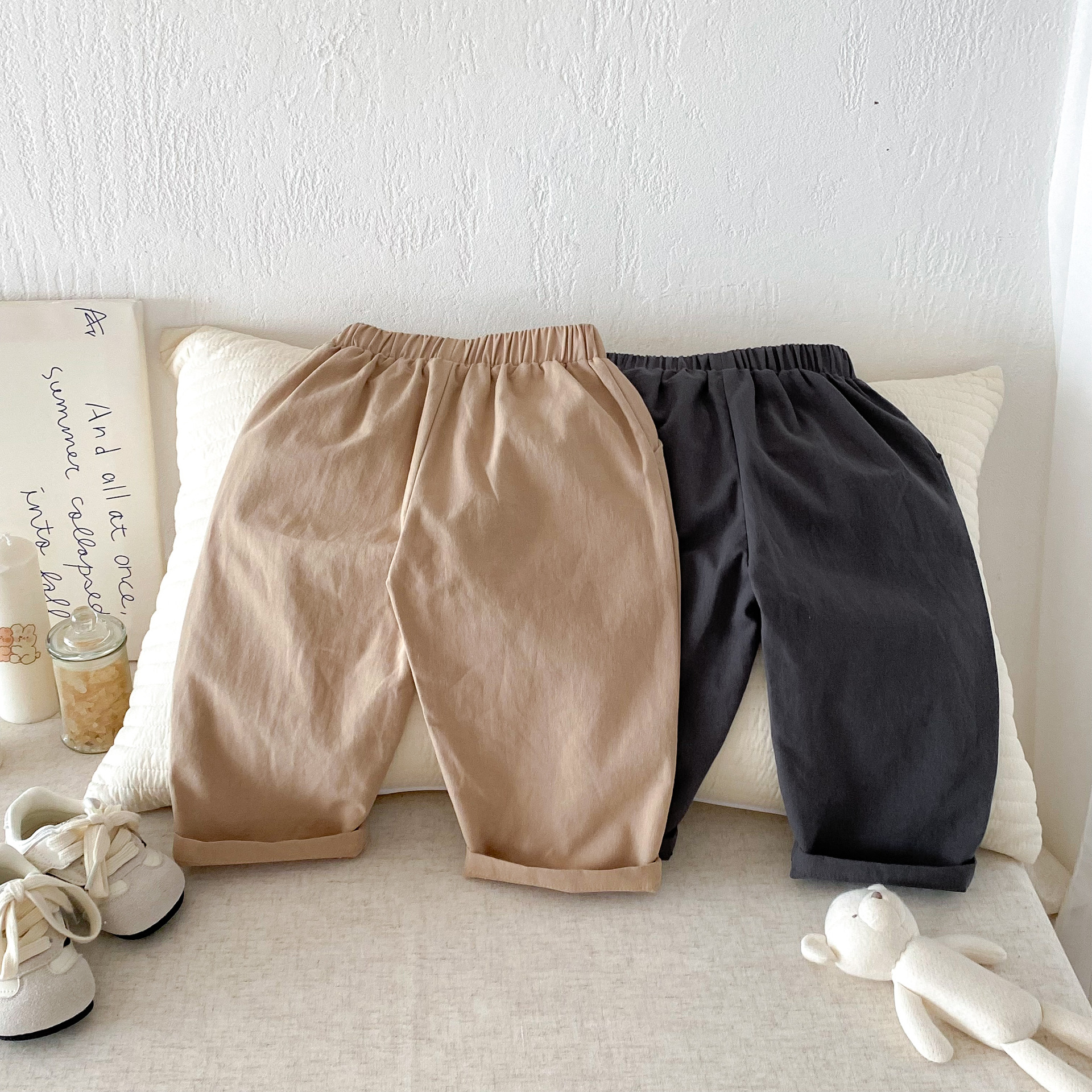 아동 캐주얼 바지 가을 한국식 단색 다용도 바지 소년 소녀용 면 신축성 있는 허리 스트레이트 바지스토어 가기