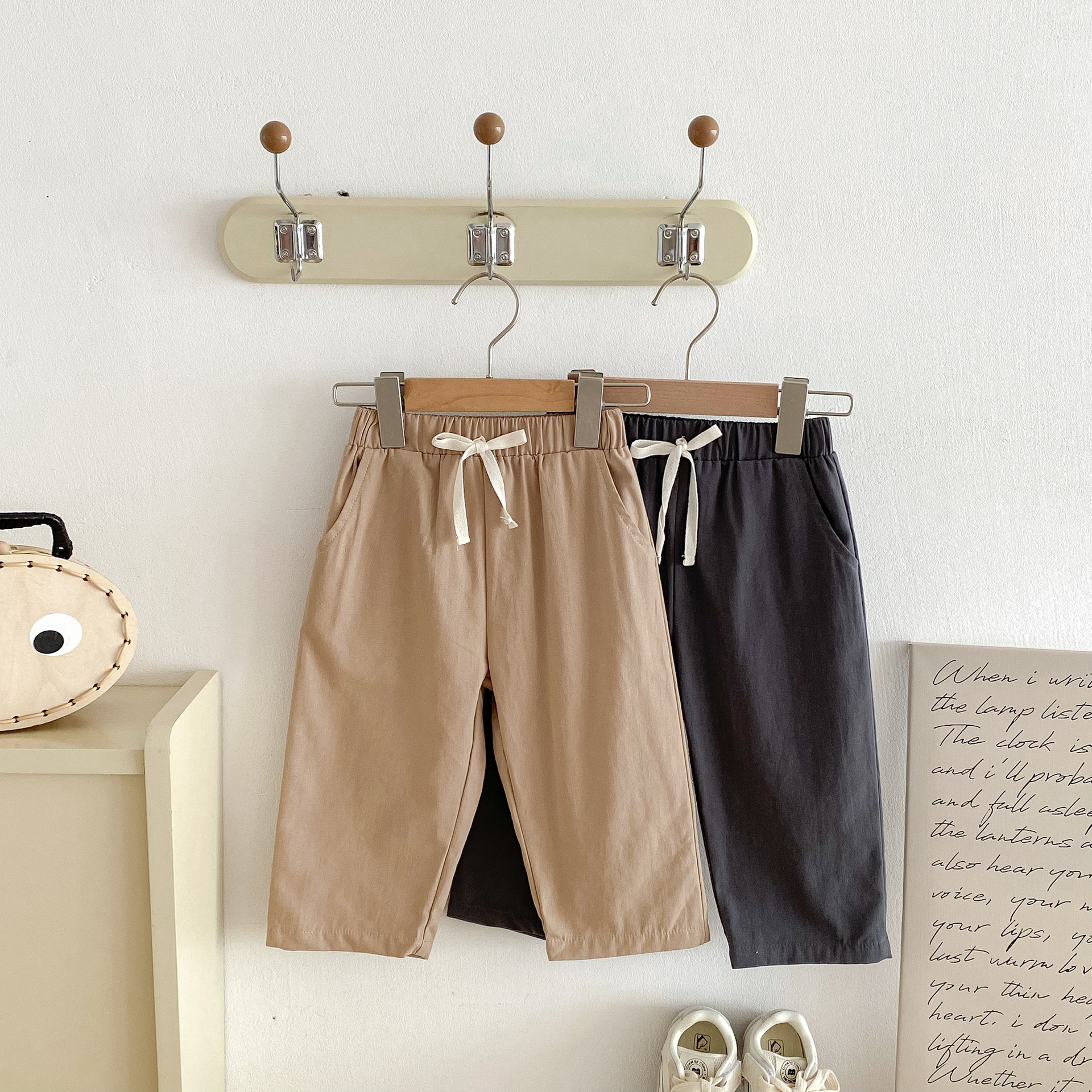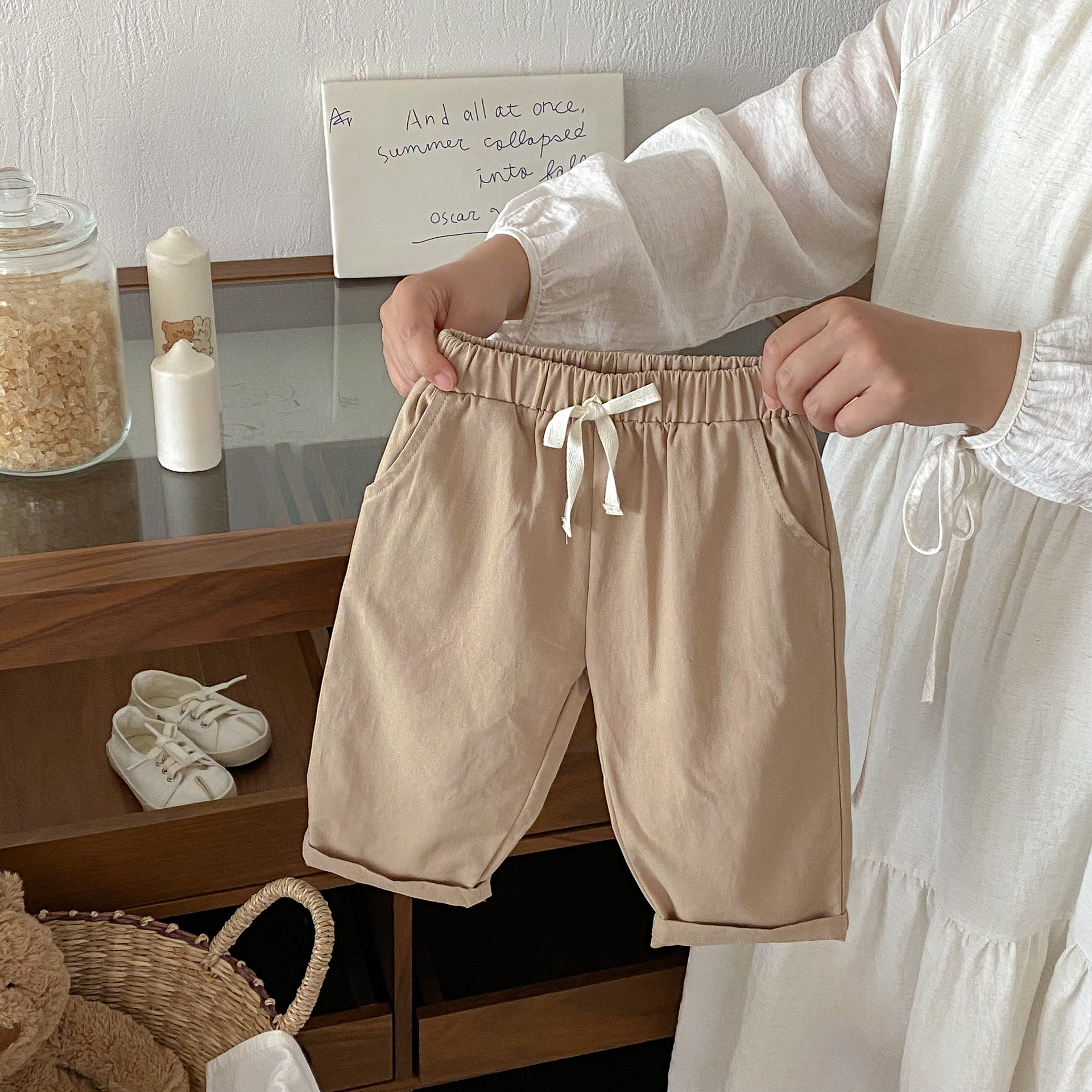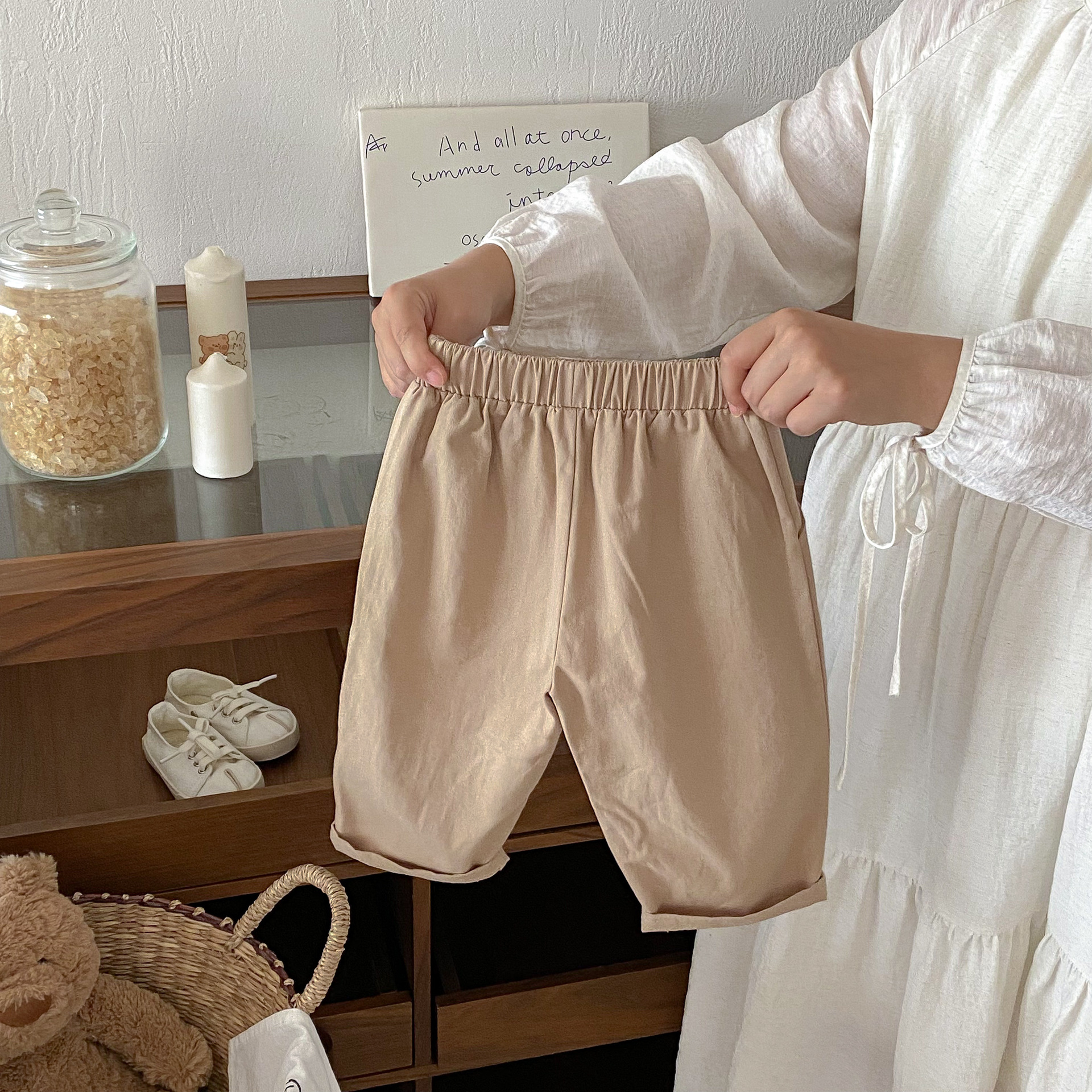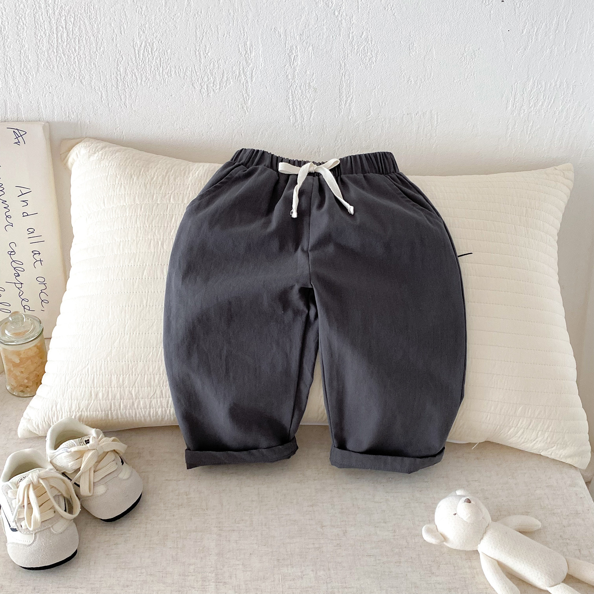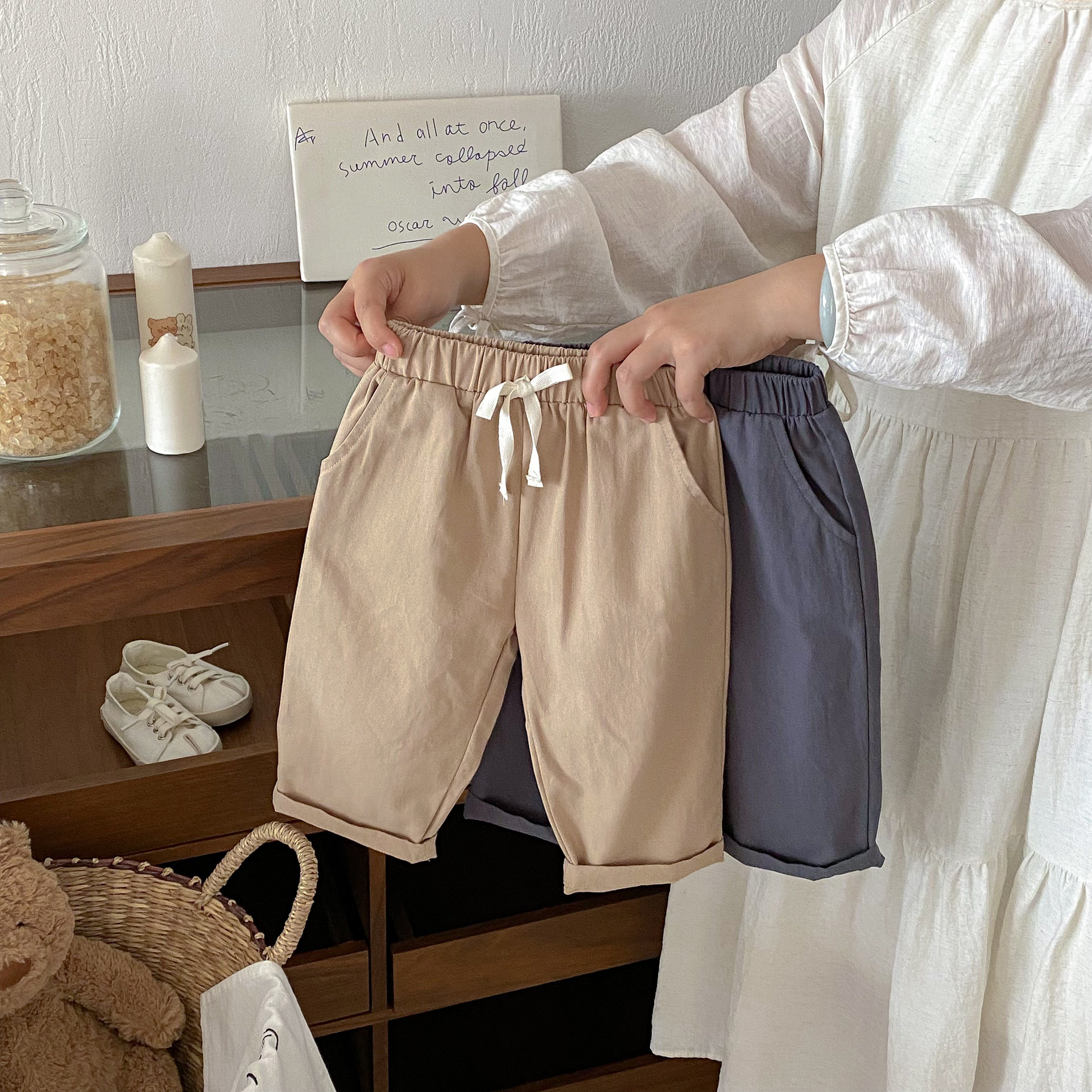 아동 캐주얼 바지 가을 한국식 단색 다용도 바지 소년 소녀용 면 신축성 있는 허리 스트레이트 바지스토어 가기