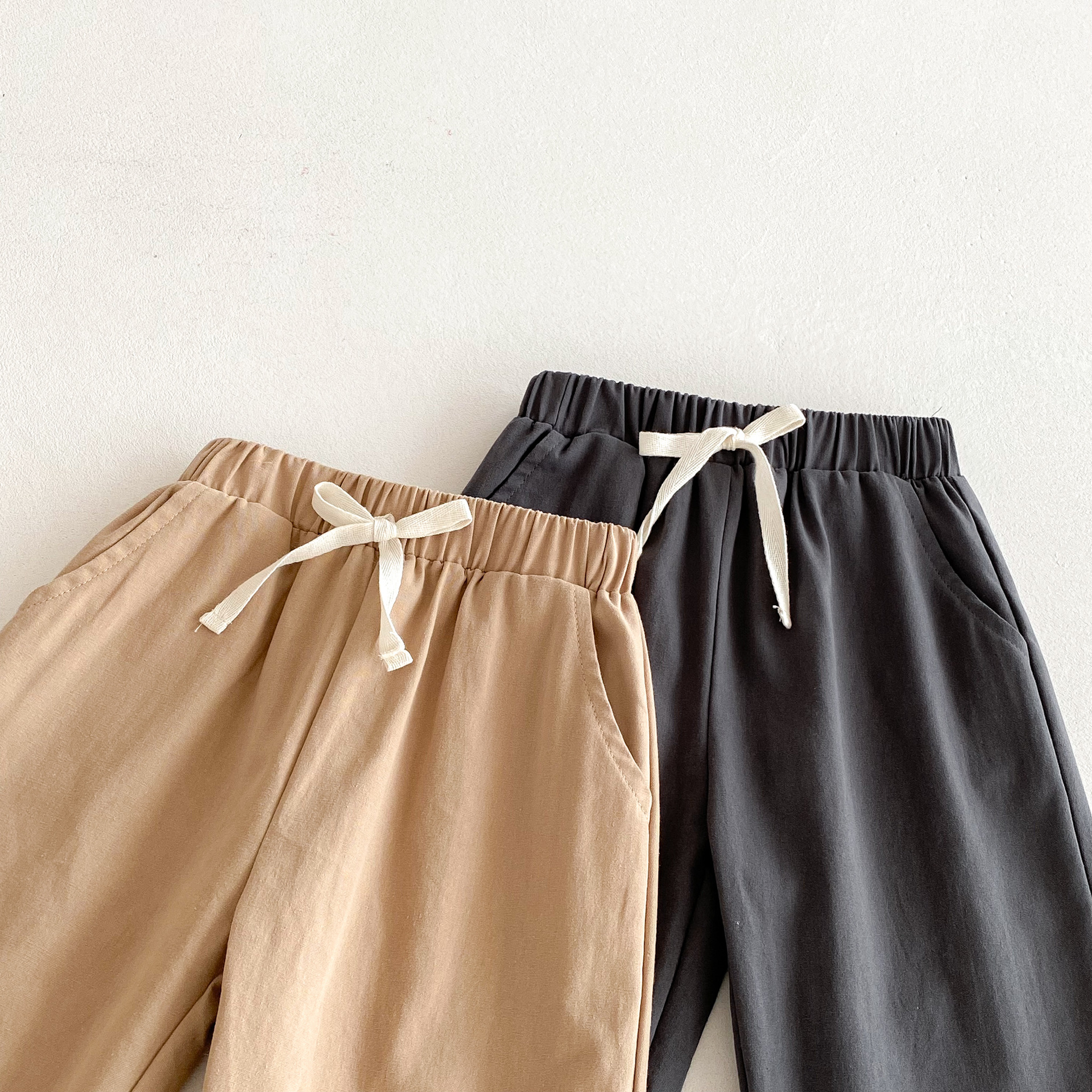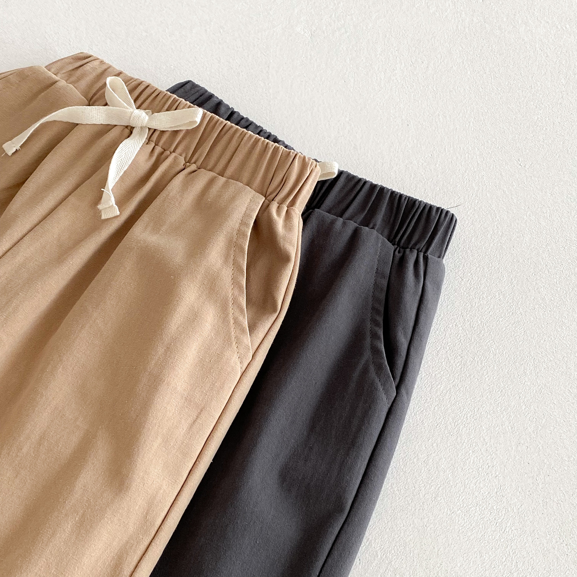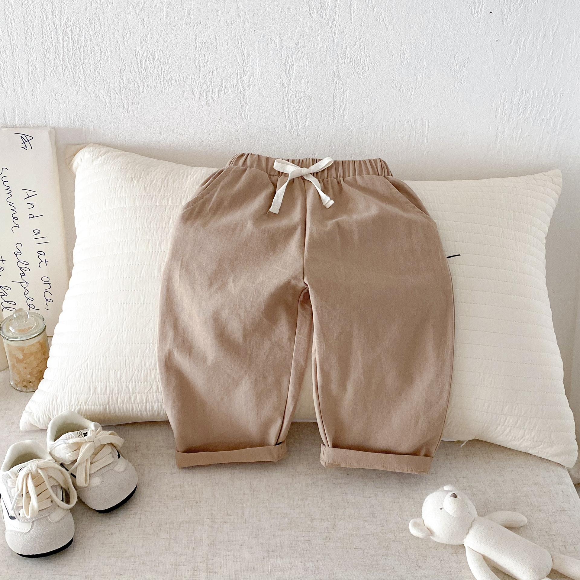 아동 캐주얼 바지 가을 한국식 단색 다용도 바지 소년 소녀용 면 신축성 있는 허리 스트레이트 바지