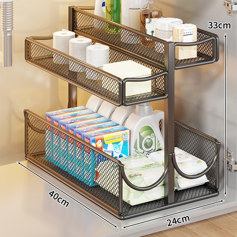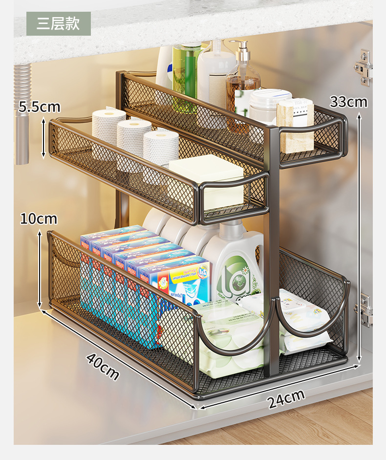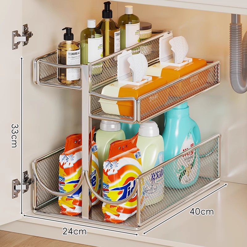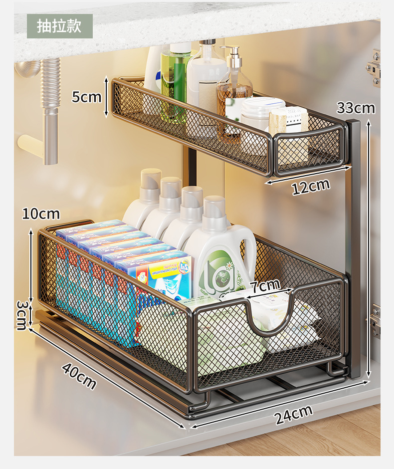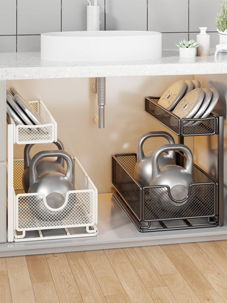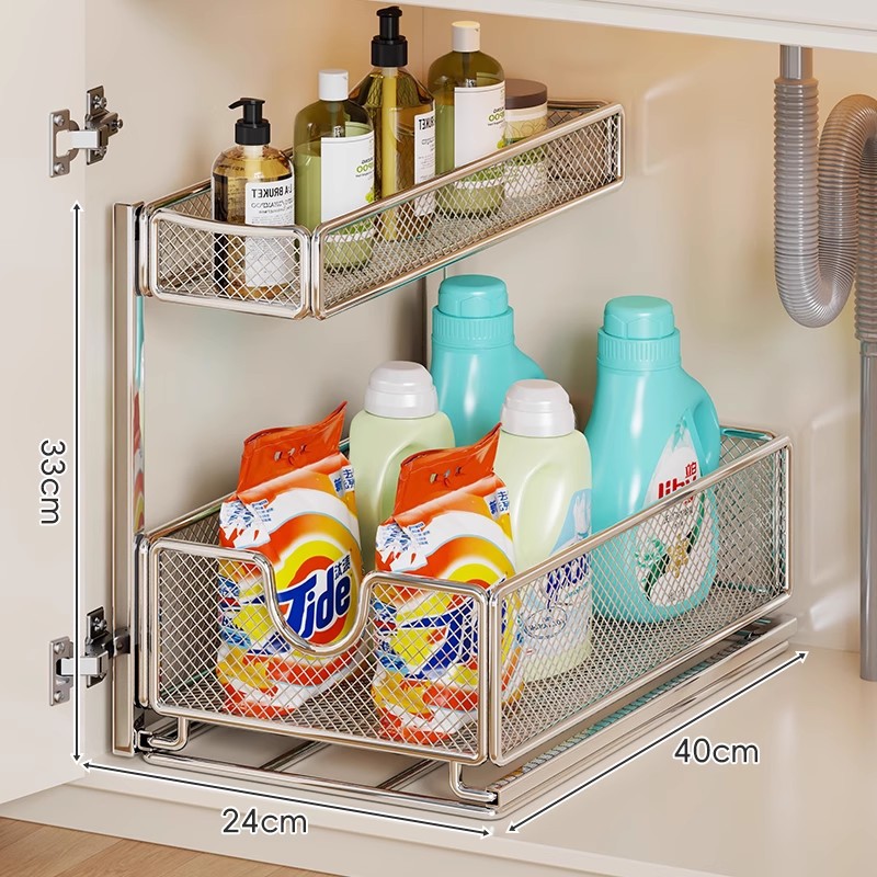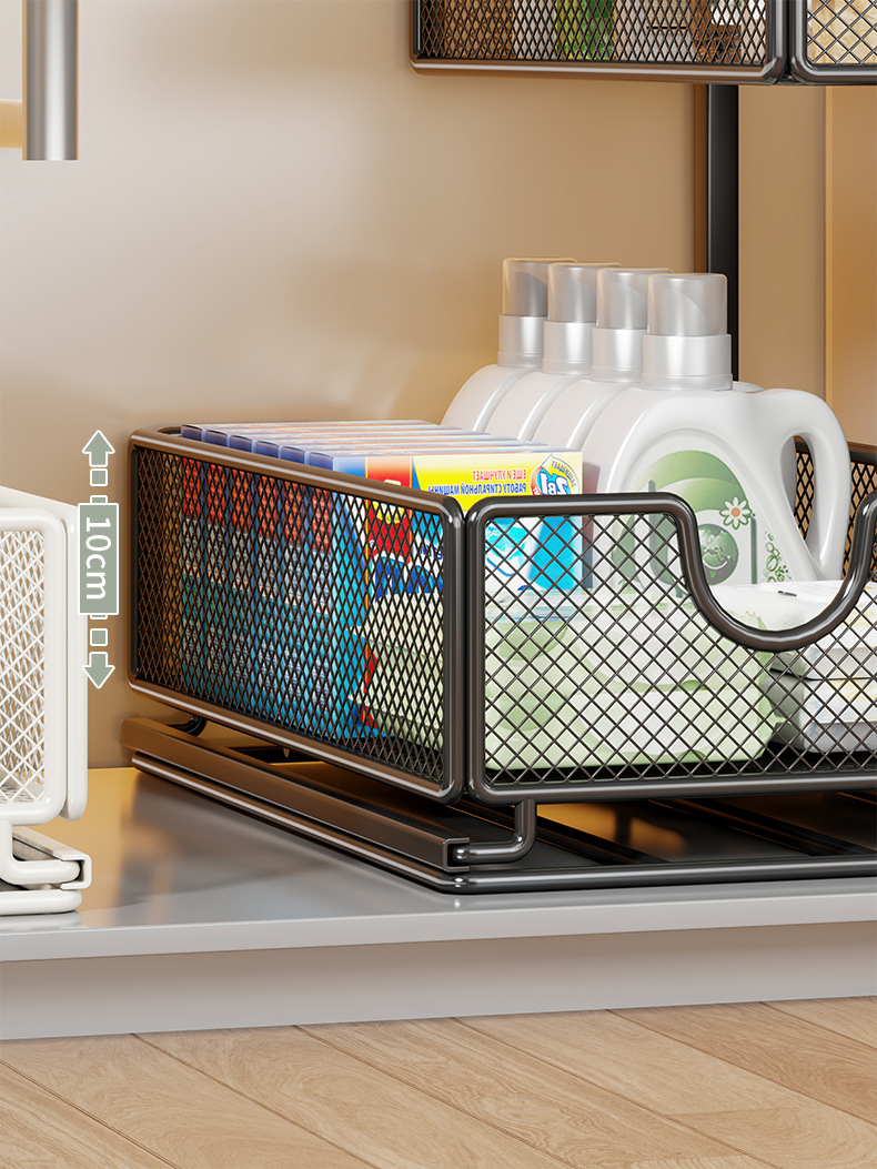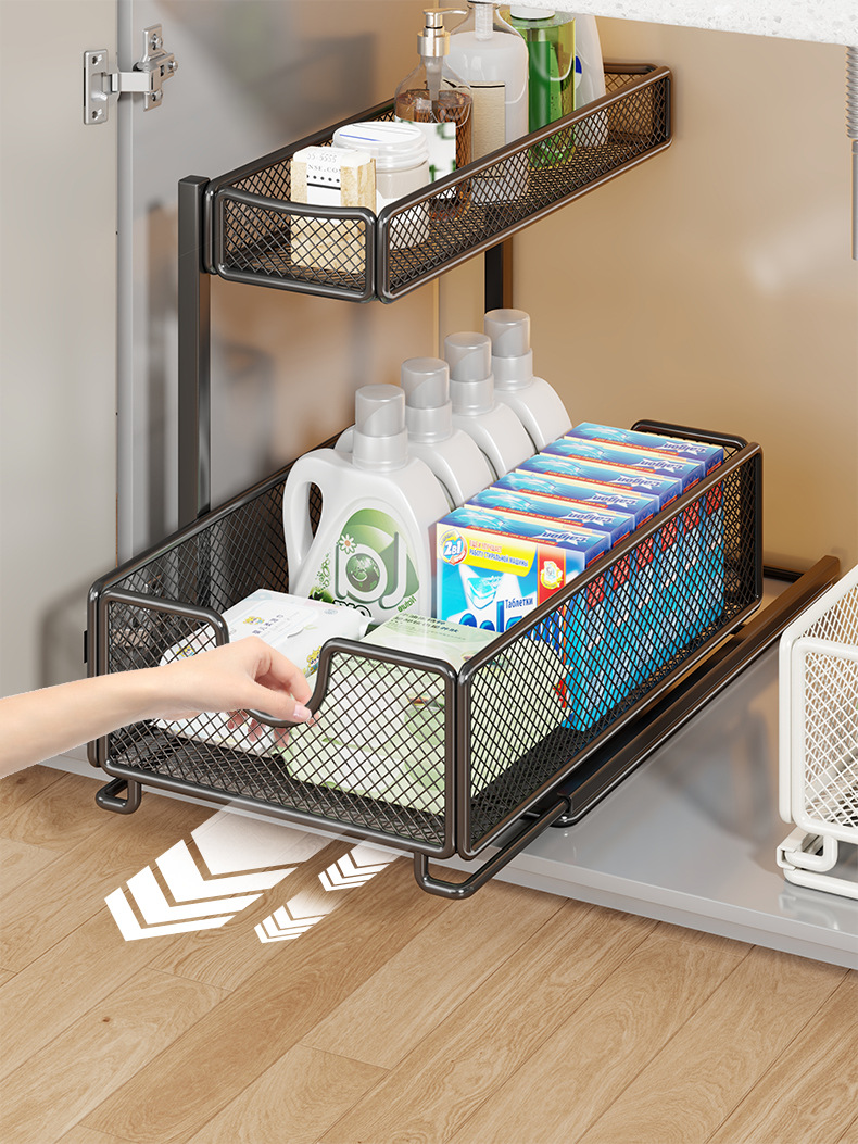 주방 싱크대 아래 풀아웃 수납선반, 캐비닛 내부 다층선반, 2단 초심형 서랍, 바구니 수납용품스토어 가기
