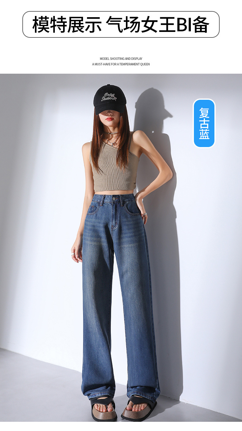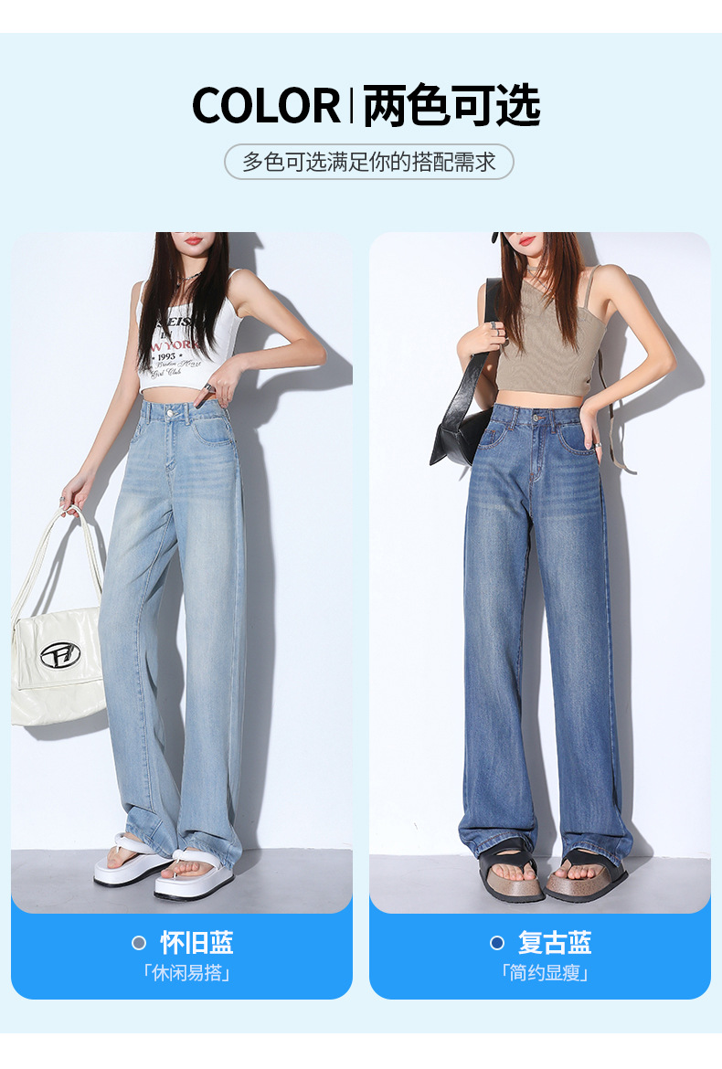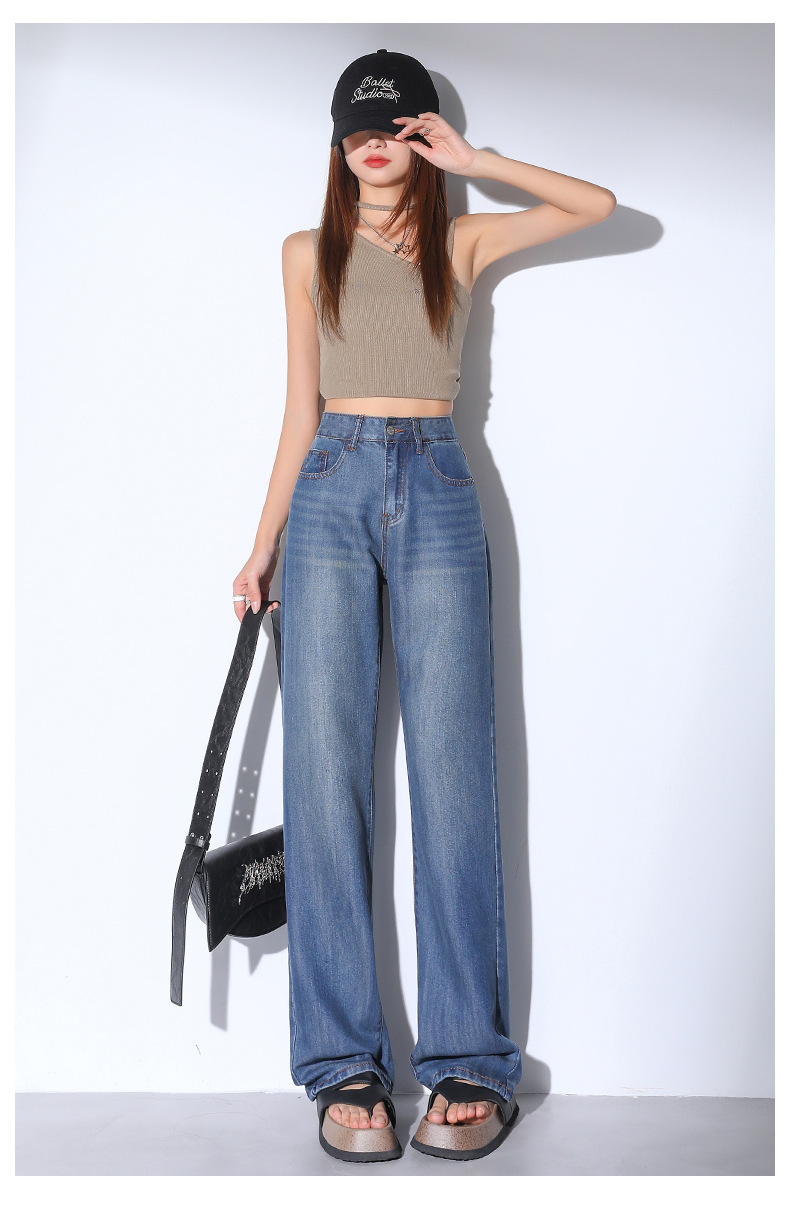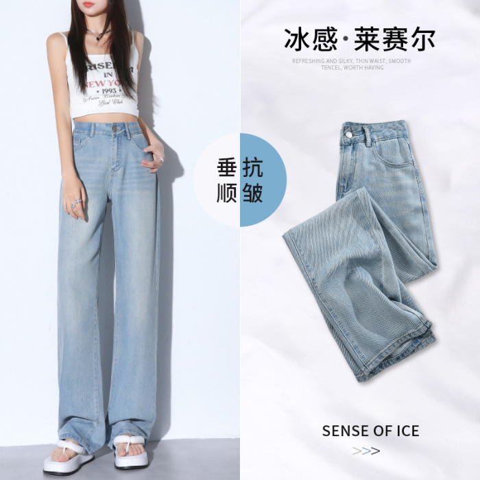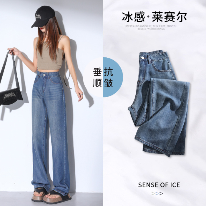 여성을위한 복고풍 향수 텐셀 청바지 2025 여름 얇은 하이 웨이스트 드레이프 바닥 길이 스트레이트 루즈 아이스 실크 바지스토어 가기