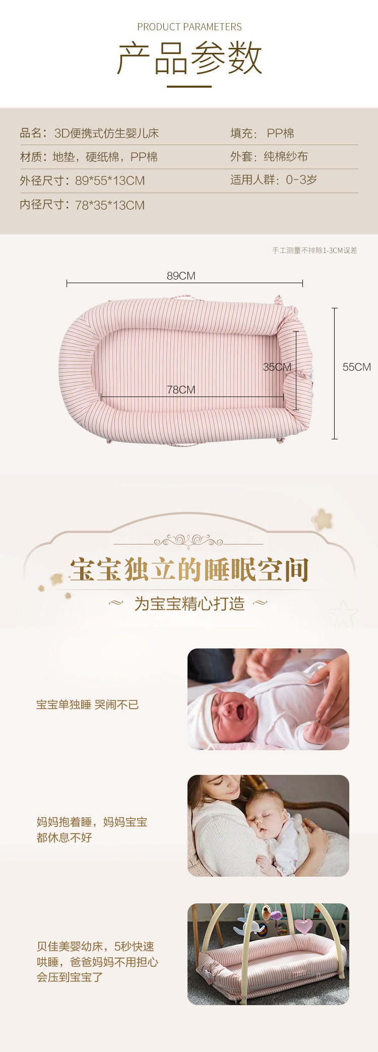 휴대용 이동식 침대, 아기 수면 침대, 다기능 유아 생체 공학 침대, 요람 침대