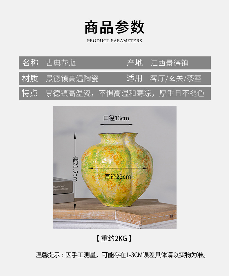 Yunshe Jingdezhen 세라믹 꽃병 고온 홈 입구 새로운 중국 스타일 수제 장식 물 재배기구 장식품스토어 가기