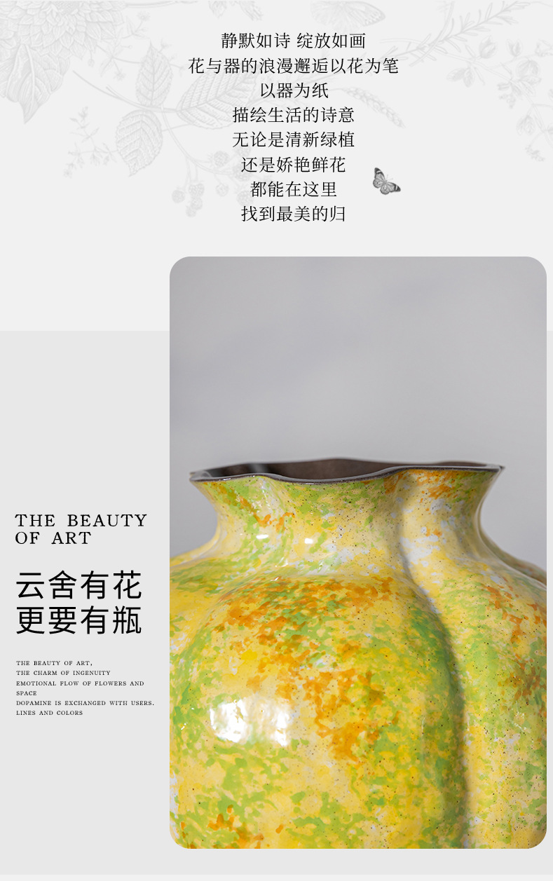 Yunshe Jingdezhen 세라믹 꽃병 고온 홈 입구 새로운 중국 스타일 수제 장식 물 재배기구 장식품