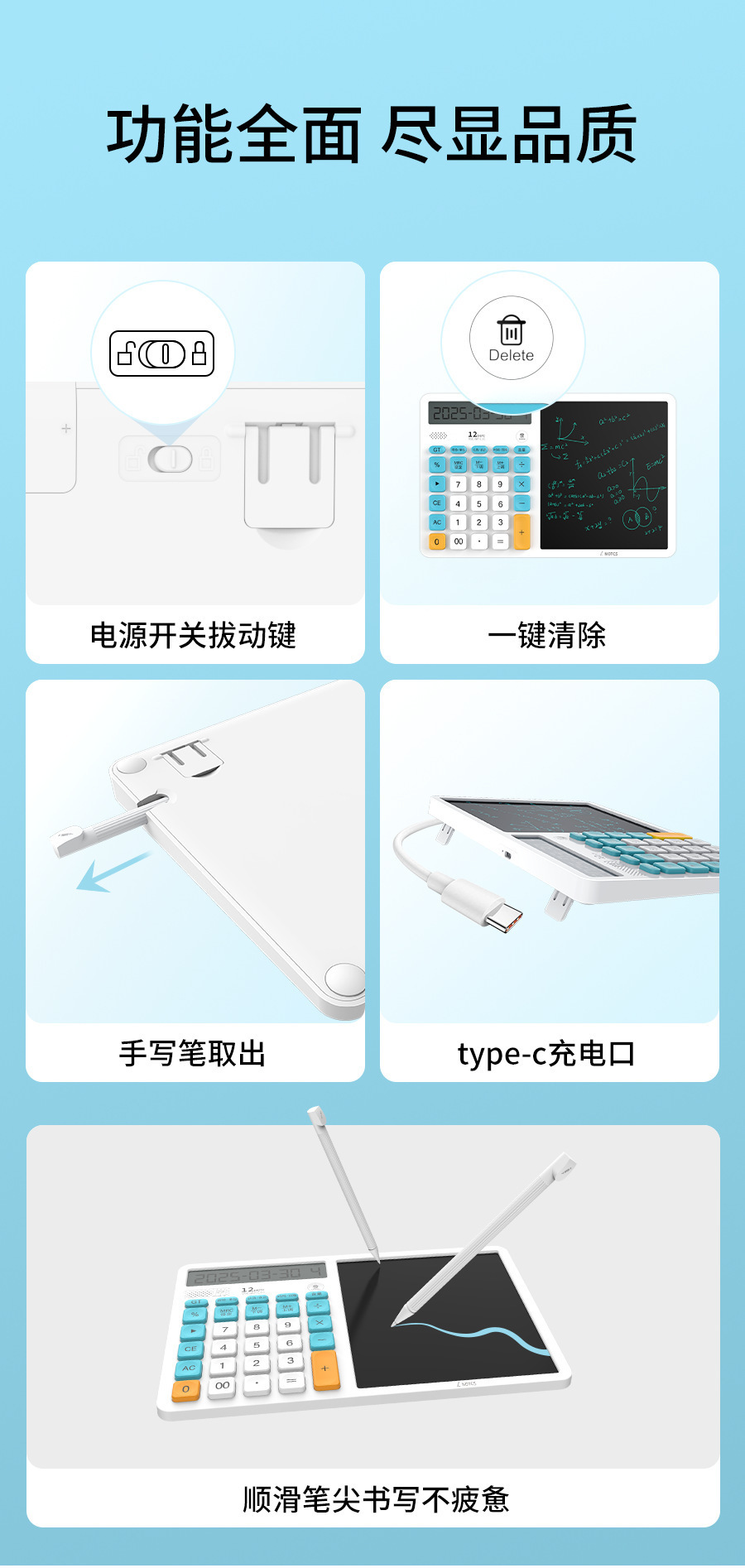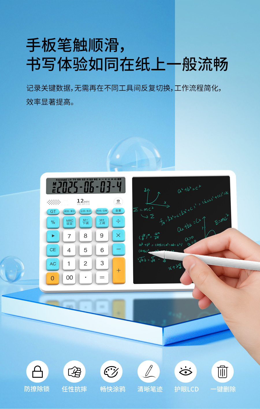 언어 LCD 필기 패드가있는 새로운 3-in-1 다기능 컴퓨터 필기 패드 태양열 탁상 달력 필기 패드스토어 가기