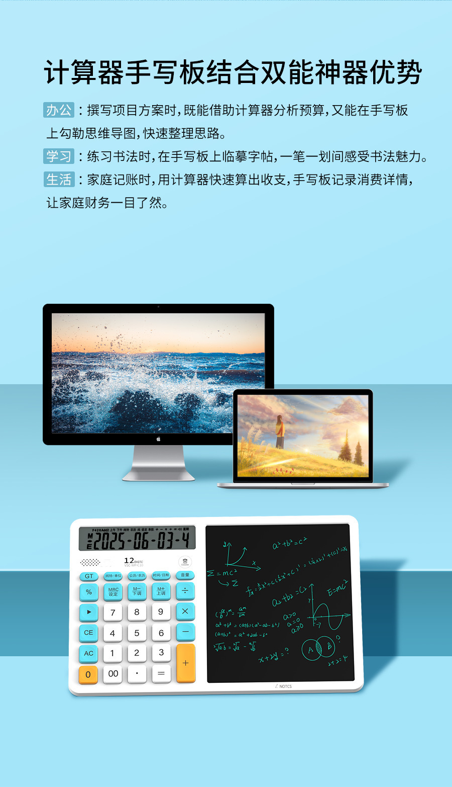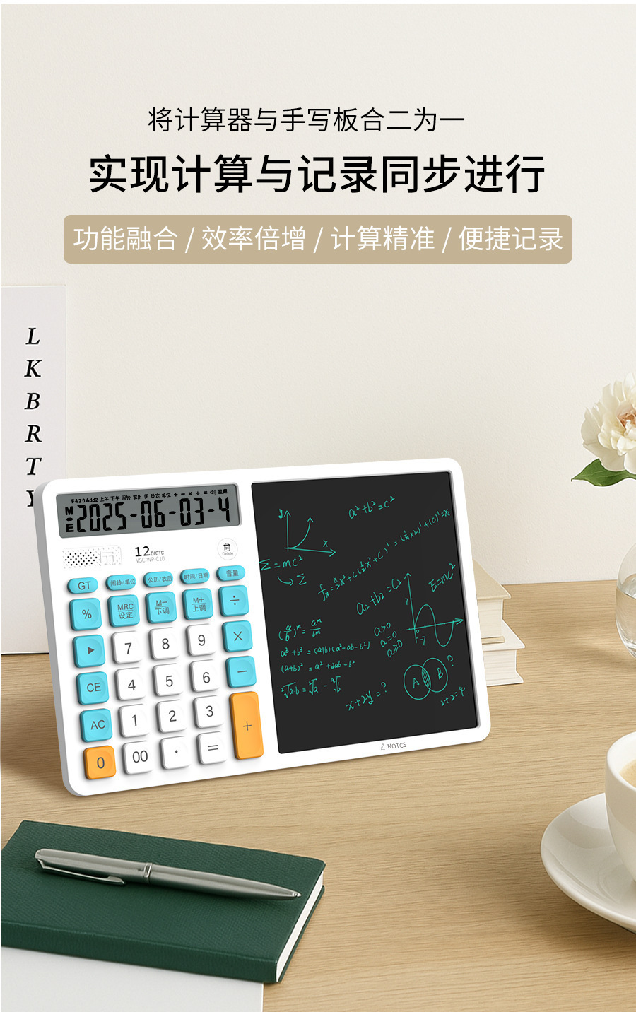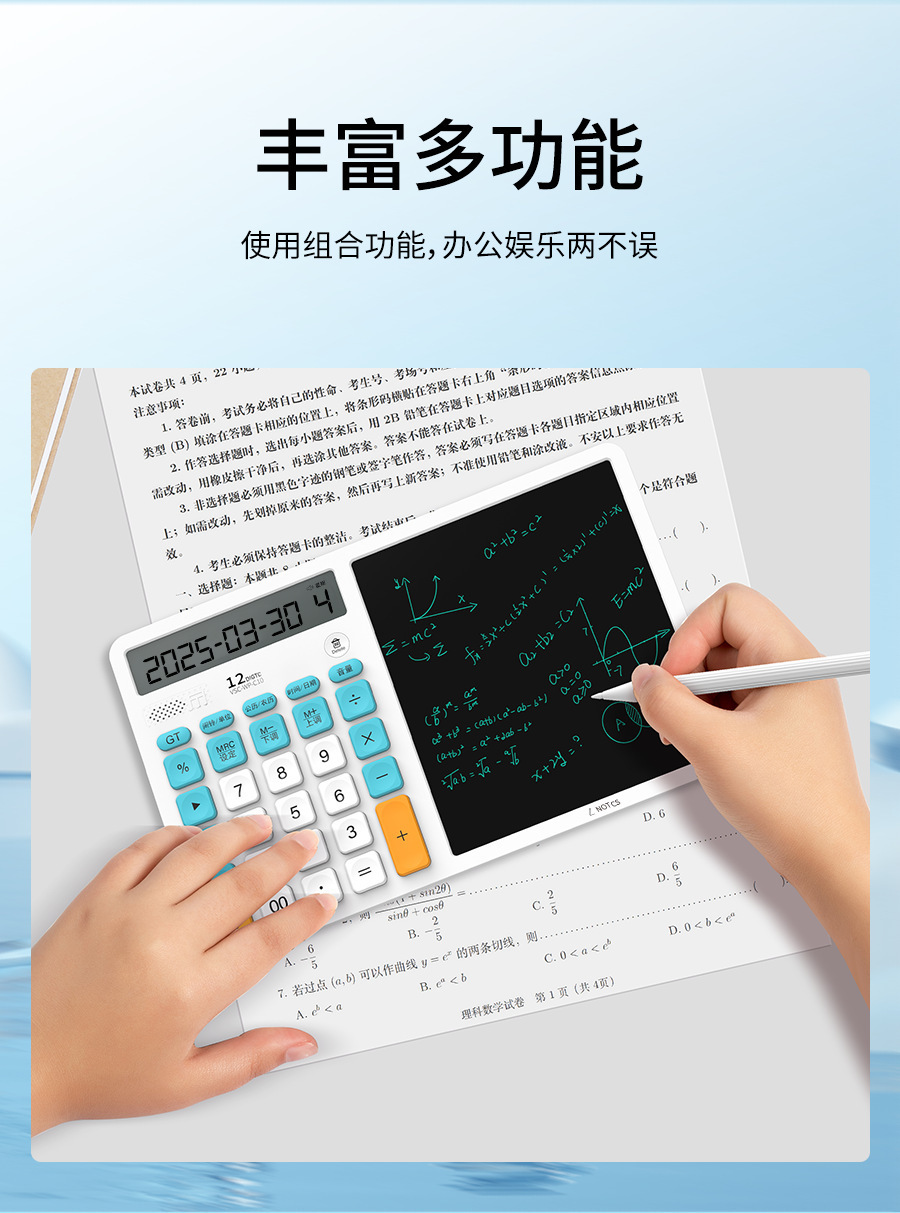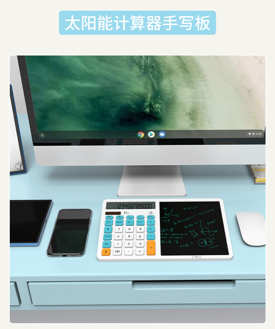 언어 LCD 필기 패드가있는 새로운 3-in-1 다기능 컴퓨터 필기 패드 태양열 탁상 달력 필기 패드