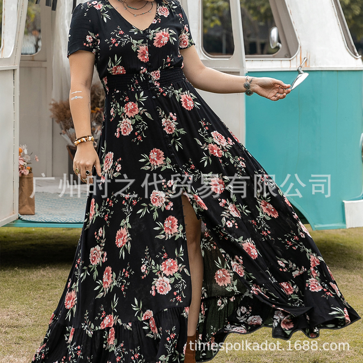 국경 간 1개 배송 국경 간 혼합 보헤미안 스타일 프린트 드레스 롱 스커트 H1591스토어 가기