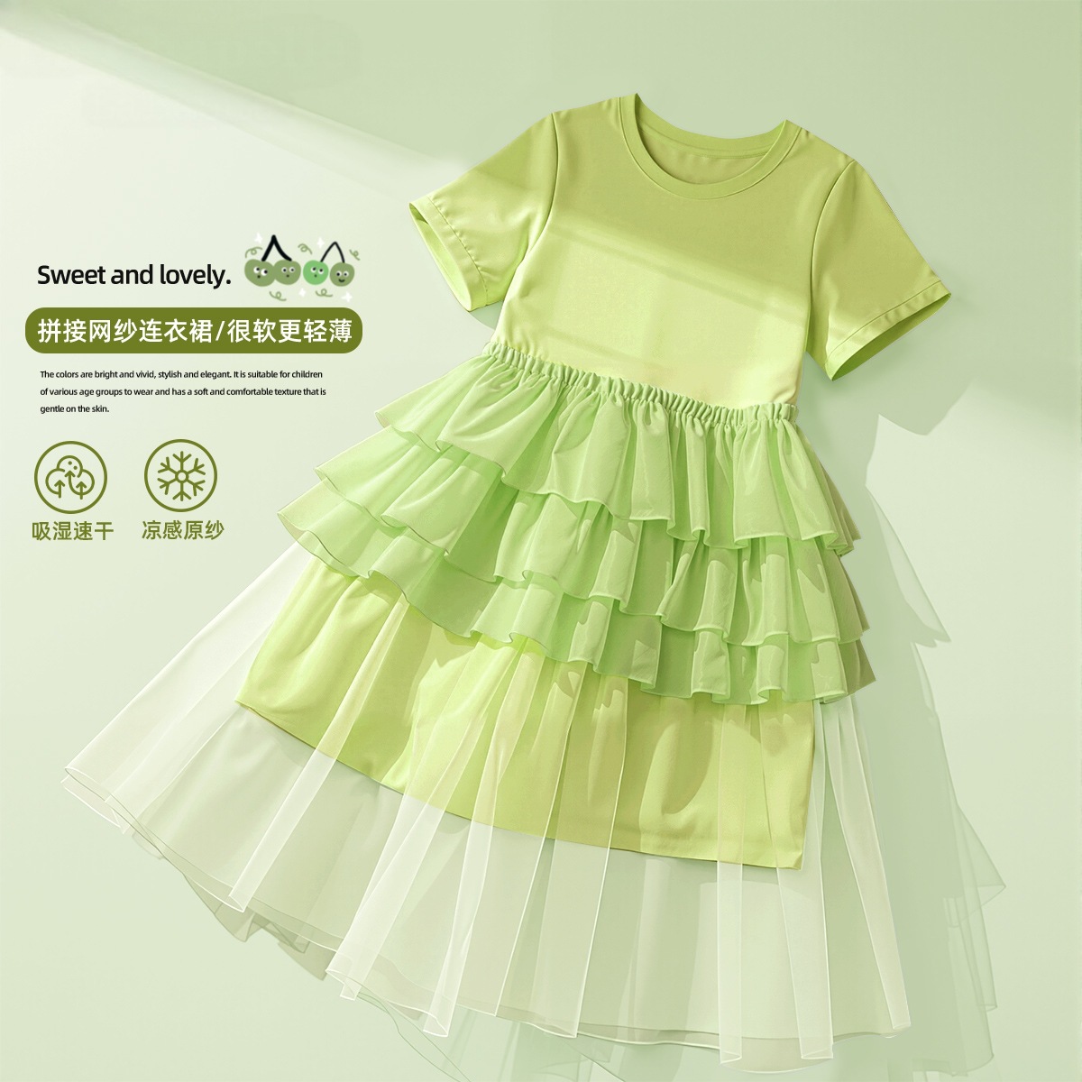 여름 여아 드레스 아동복 공주 드레스 2026 신상 스타일리쉬한 아동 반팔 메쉬 드레스 유행 상품 도매