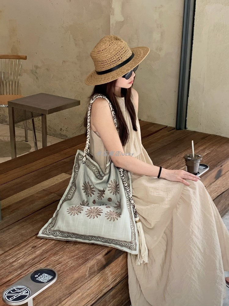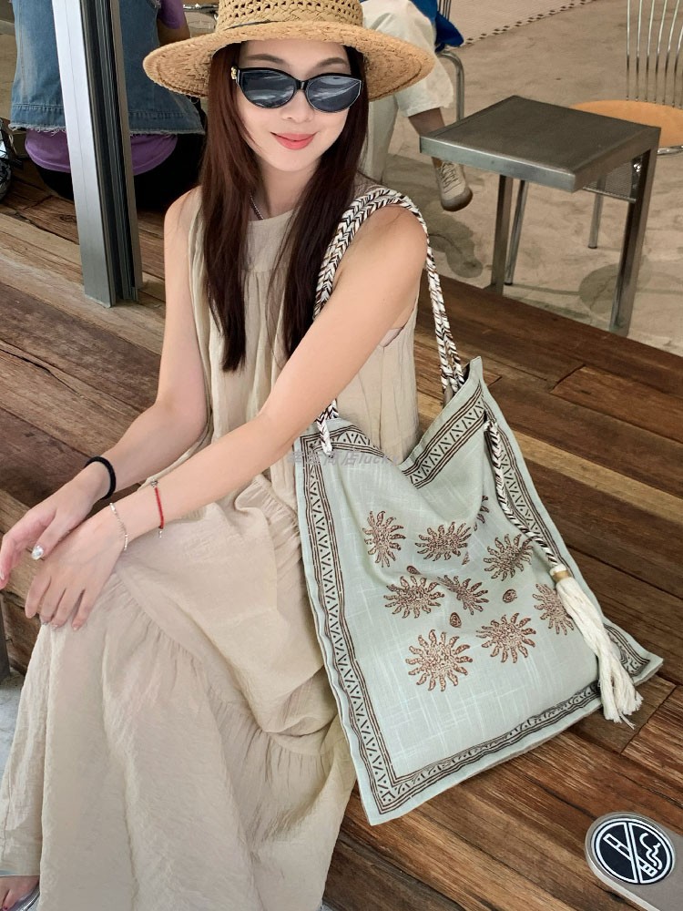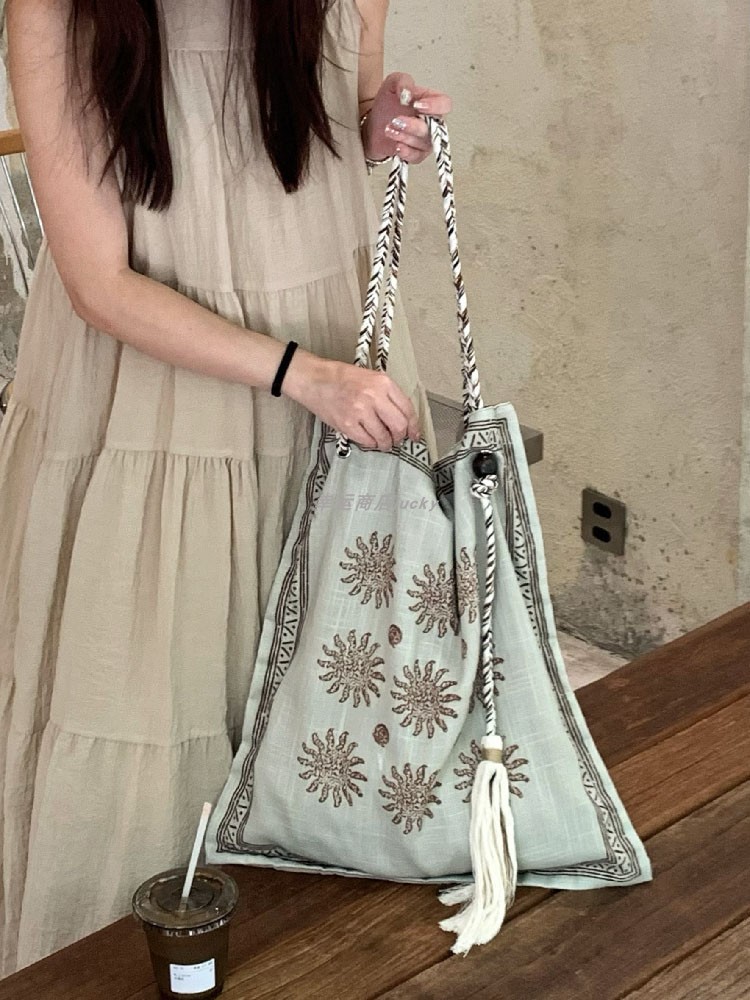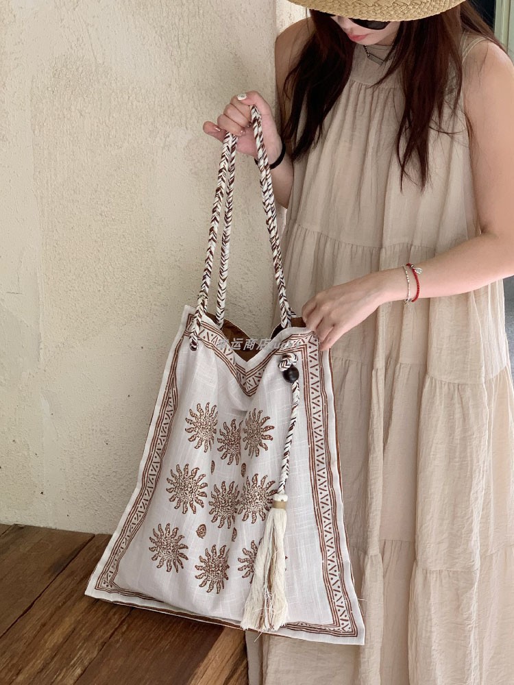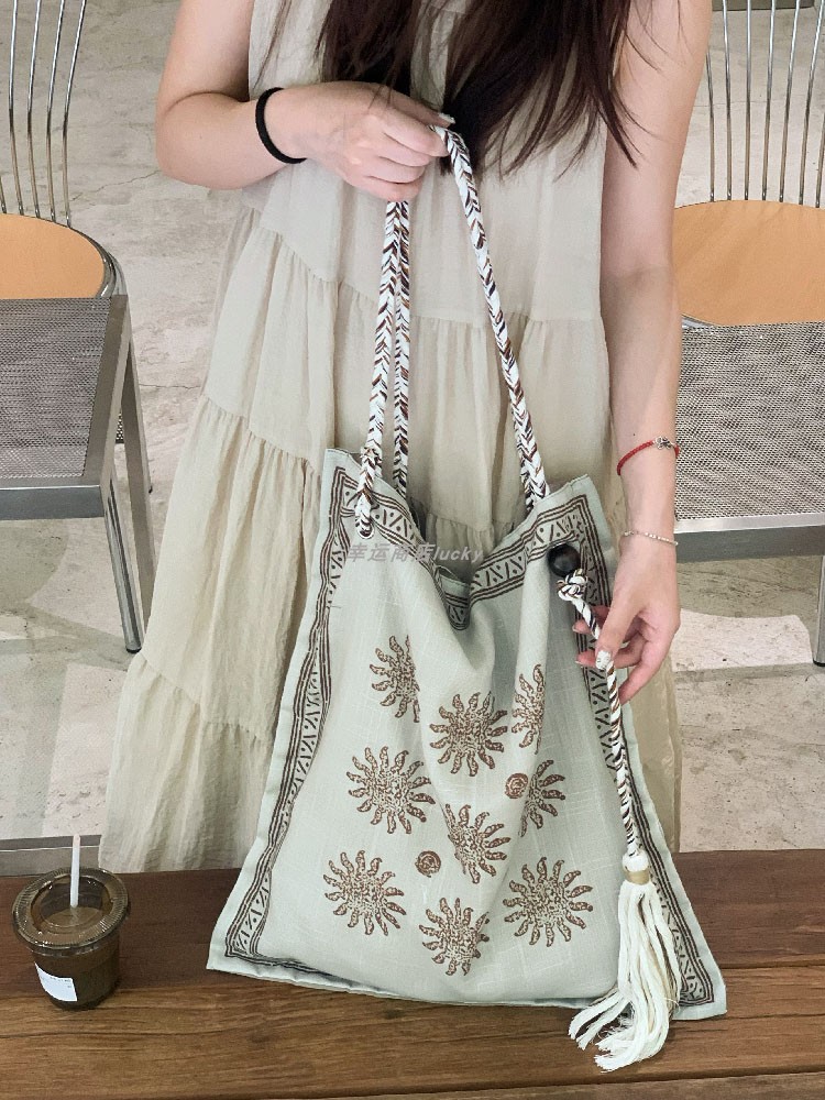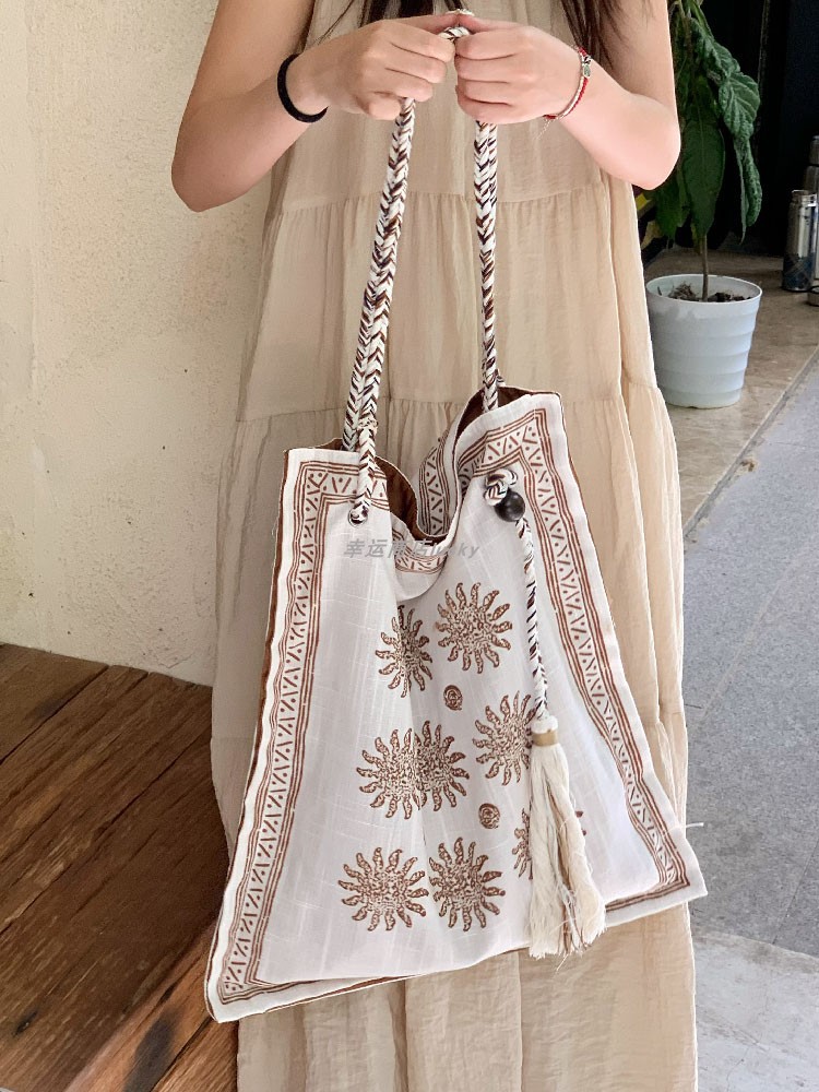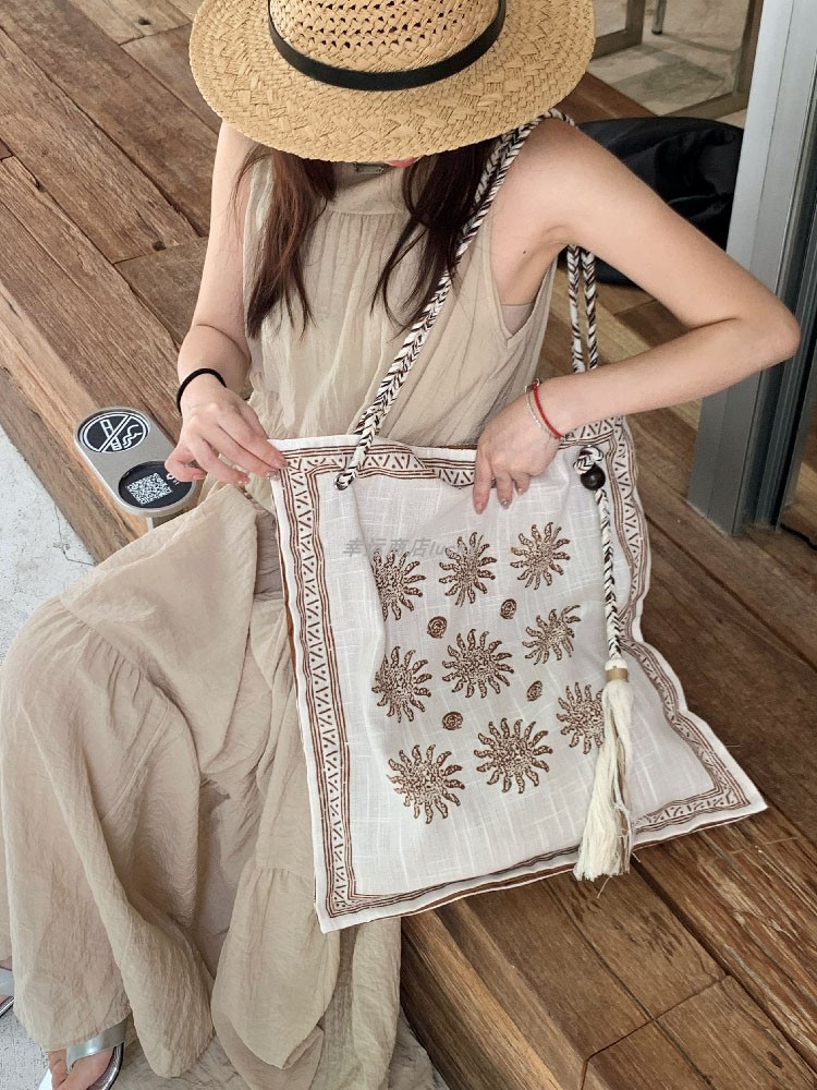 보헤미안 스타일 태슬 숄더백 린넨 로프 우븐 홀리데이 스타일 대용량 틈새 디자인 하이엔드 크로스바디