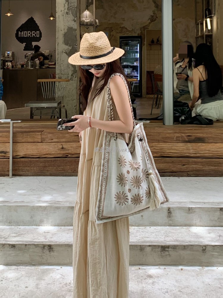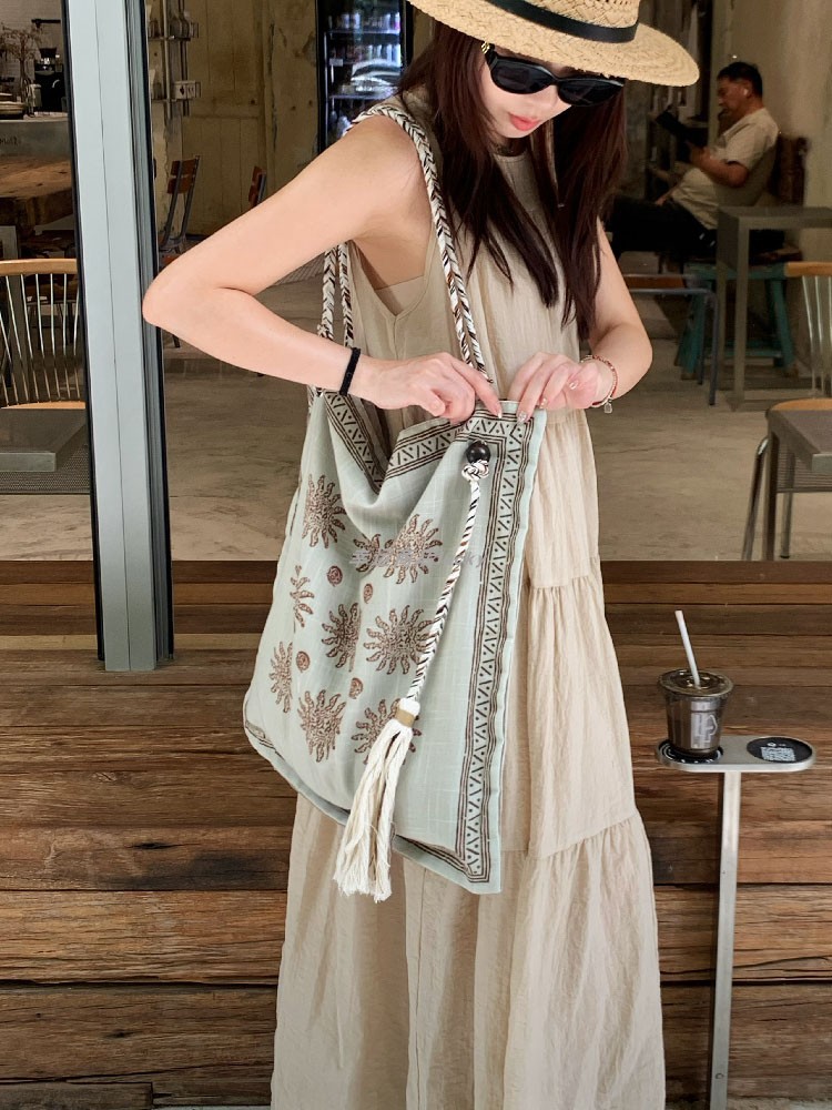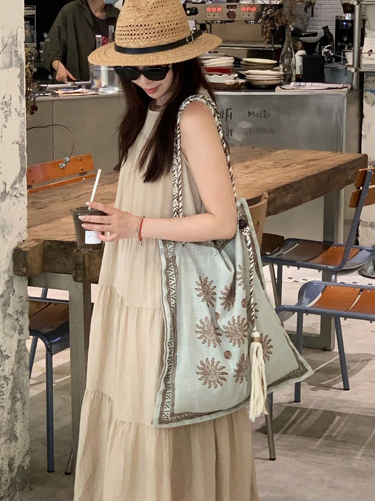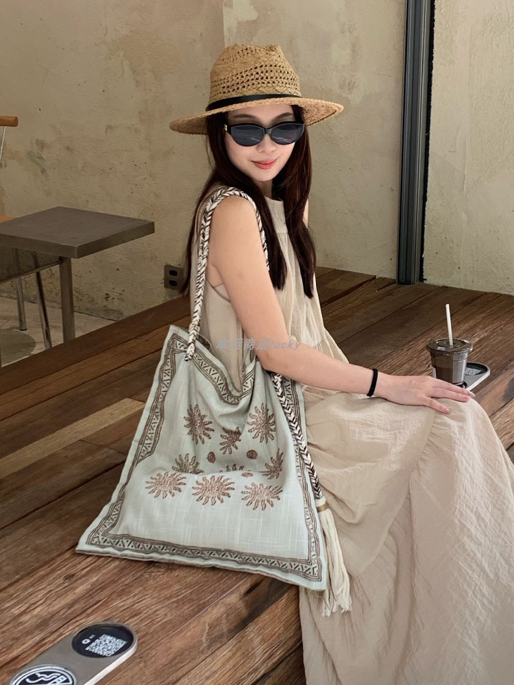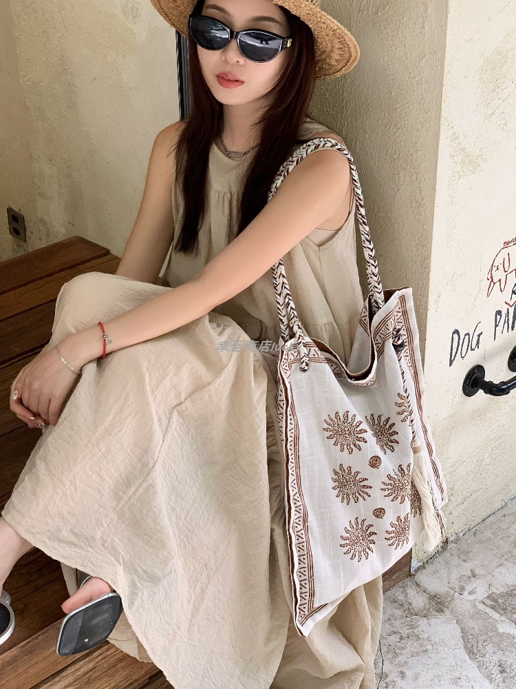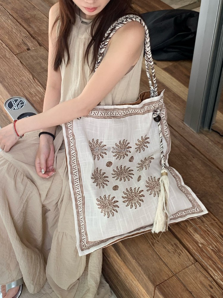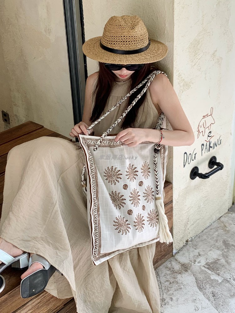 보헤미안 스타일 태슬 숄더백 린넨 로프 우븐 홀리데이 스타일 대용량 틈새 디자인 하이엔드 크로스바디