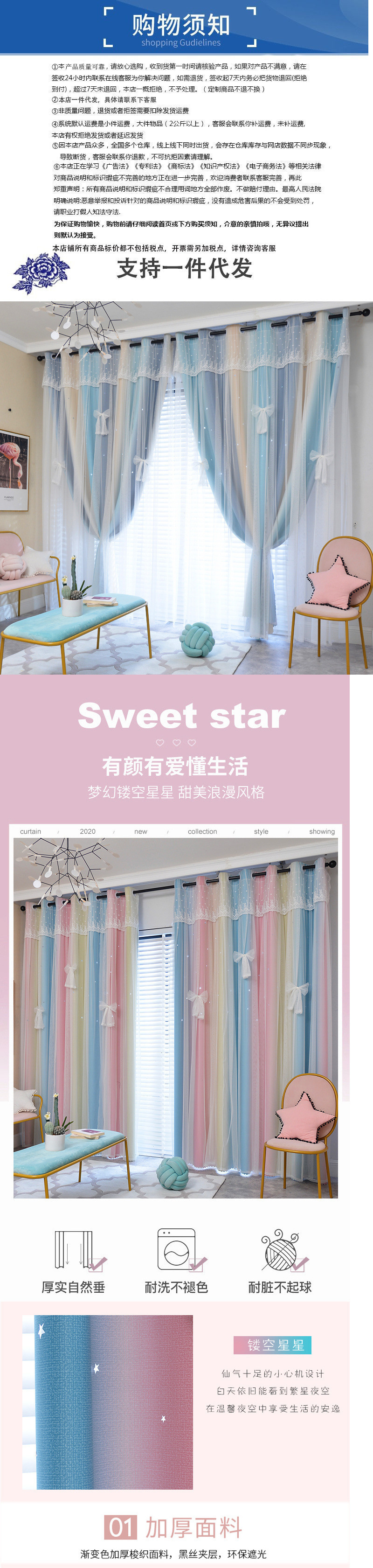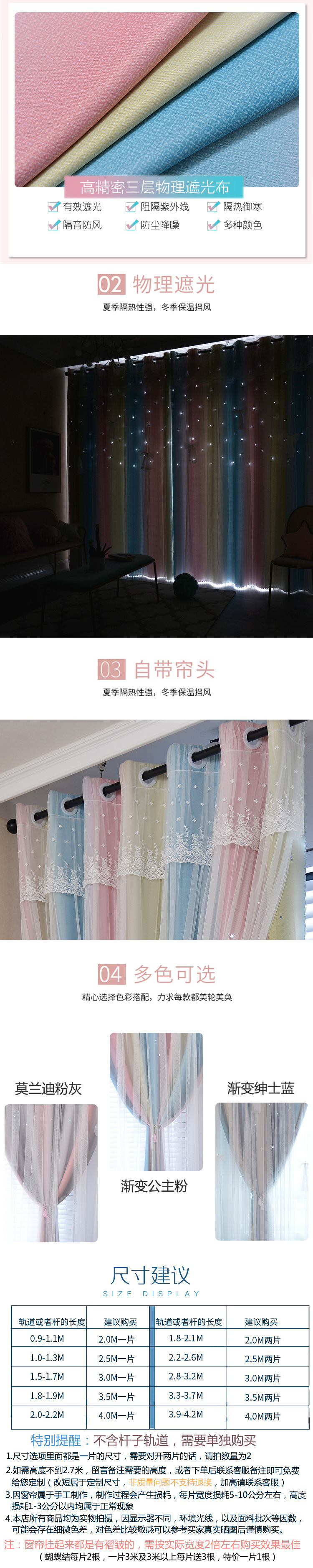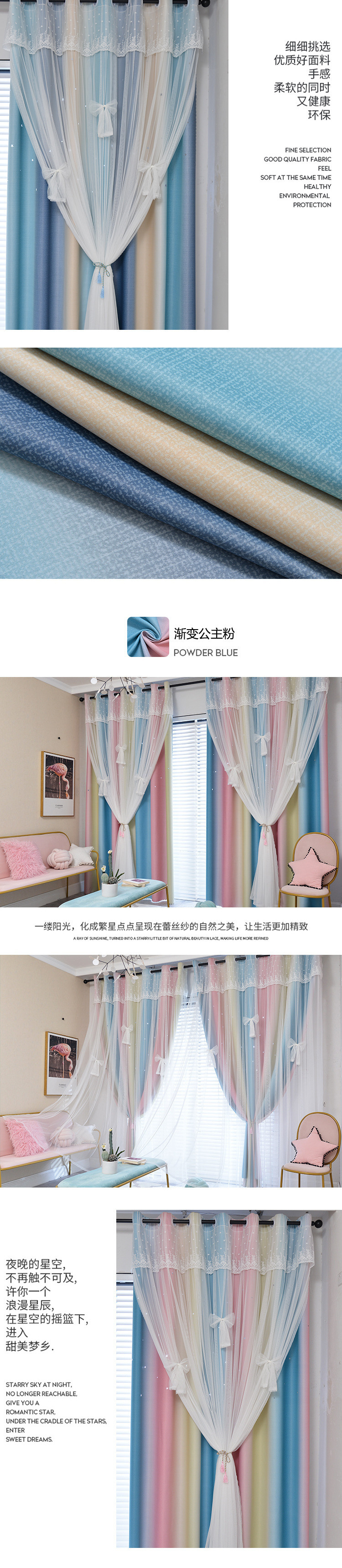 실이있는 더블 레이어 판타지 커튼 공주 스타일 침실 새로운 벌크 화창한 창 빛 차단 어린이 방 소녀 거실 커튼스토어 가기